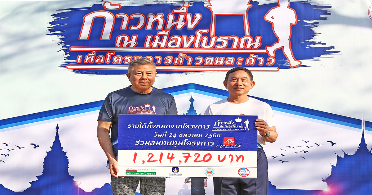 บมจ.วิริยะประกันภัย ร่วมกับ เมืองโบราณ สมุทรปราการ จัดงานวิ่งการกุศล มินิมาราธอน “ก้าวหนึ่ง ณ เมืองโบราณ เพื่อโครงการก้าวคนละก้าว” โดยได้รับเกียรติจาก พลอากาศเอก ดร.ประจิน จั่นตอง รองนายกรัฐมนตรี และรัฐมนตรีว่าการกระทรวงยุติธรรม เป็นประธานในพิธี และมี นายชาติชาย อุทัยพันธ์ ผู้ว่าราชการจังหวัดสมุทรปราการ พลตำรวจตรี วรศักดิ์ นพสิทธิพร รองผู้บัญชาการตำรวจนครบาล พลตำรวจโทเผ่าไทย ทองธิว กรรมการและที่ปรึกษา บมจ.วิริยะประกันภัย เหล่าศิลปินดาราที่มีชื่อเสียง อาทิ แพนเค้ก-เขมนิจ, ไอซ์-ศรัณยู, กระแต อาร์สยาม และประชาชนทั่วไปกว่า 2,000 คนเข้าร่วมกิจกรรม โดยรายได้และเงินบริจาคที่ได้จากการจัดกิจกรรมในครั้งนี้ เป็นจำนวนเงินทั้งสิ้น 1,214,720 บาท