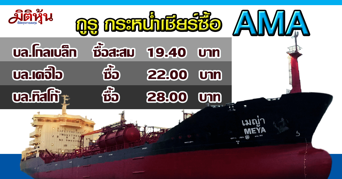 ผู้สื่อข่าว “มิติหุ้น” รายงานว่า บริษัท อาม่า มารีน จำกัด (มหาชน) หรือ AMA ผู้ประกอบธุรกิจบริการขนส่งสินค้าเหลวทางเรือระหว่างประเทศ และให้บริการขนส่งสินค้าเหลวทางรถในประเทศ โดย นาย พิศาล รัชกิจประการกรรมการผู้จัดการ เปิดเผยว่า บริษัทเตรียมงบลงทุนสำหรับปี 2561 ไว้ที่ 300-350 ล้านบาท เพื่อใช้สำหรับ ซื้อ เรือบรรทุกของเหลวและสารเคมี เพิ่มอีก 2 ลำ และมีความสามารถในการรับน้ำหนักในการบรรทุกสินค้าเฉลี่ย 13,000 เดทเวทตันต่อลำ จากในขณะนี้ มีกองเรือรวมทั้งสิ้น 11 ลำ ลำรับน้ำหนักรวมได้ 96,202 เดทเวทตัน โดยกระบวนการซื้อเรือนั้น คาดจะเกิดขึ้นในช่วงต้นไตรมาส 2/2561 จำนวน 1 ลำ และ ช่วงไตรมาส 3/2561 อีกจำนวน 1 ลำ ขณะเดียวกันยังใช้สำหรับซื้อรถบรรทุกขนส่งสินค้าภายในประเทศเพิ่มอีก 30 คัน เพื่อรองรับจำนวนลูกค้าที่ความต้องการใช้รถมากขึ้น