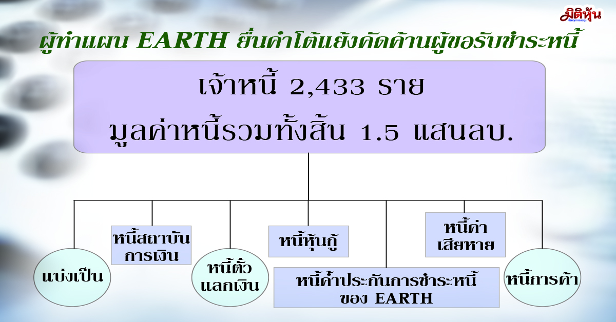 ผู้ทำแผน EARTH ยื่นคำโต้แย้งคัดค้านขอรับชำระหนี้เหตุไม่ตรงจำนวน