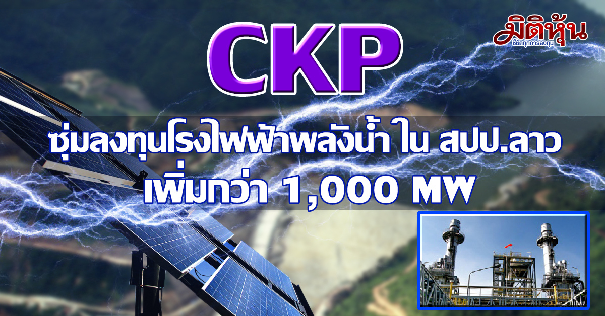 CKPเล็งขยายกำลังผลิตไฟฟ้าพลังงานน้ำในลาวเพิ่ม 1,000 MWงบลงทุนปี62 ราว1,700 ลบ.