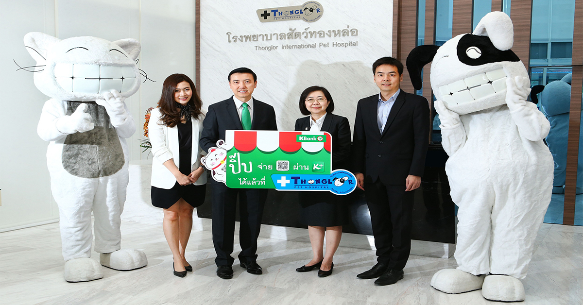 นายสุวัฒน์ เตชะวัฒวรรณา รองกรรมการผู้จัดการ ธนาคารกสิกรไทย และ สัตวแพทย์หญิงกฤติกา ชัยสุพัฒนากุล ประธานกรรมการบริหาร โรงพยาบาลสัตว์ทองหล่อ ร่วมเปิดให้บริการรับชำระเงินด้วย “คิวอาร์ โค้ด” (QR Code Payment) แก่โรงพยาบาลสัตว์ทองหล่อทุกสาขา เพื่อเพิ่มความสะดวกแก่ผู้ใช้บริการของโรงพยาบาลให้สามารถชำระเงินค่าบริการผ่านแอปพลิเคชัน K PLUS ของธนาคารกสิกรไทย และโมบายแบงกิ้งของธนาคารอื่น ณ โรงพยาบาลสัตว์ทองหล่อ พระราม 9 เมื่อเร็ว ๆ นี้