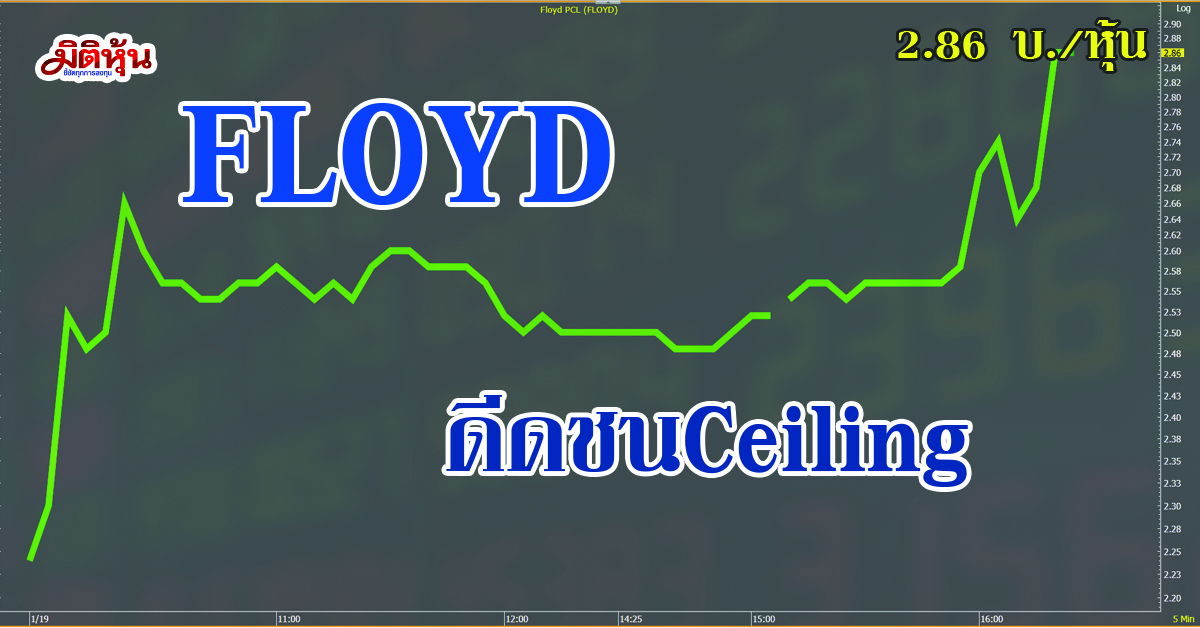 ผู้สื่อข่าว “มิติหุ้น” รายงานว่า ราคาหุ้น บมจ. ฟลอยด์ หรือ FLOYD ดำเนินธุรกิจให้บริการรับเหมาติดตั้งงานระบบไฟฟ้า ระบบสื่อสาร ระบบสุขาภิบาลและระบบป้องกันอัคคีภัย และระบบปรับอากาศ ปรับตัวเพิ่มขึ้นร้อนแรง แตะระดับ 2.66 บาท (10.25 น.) เพิ่มขึ้น 0.46 บาท หรือ 20.91% ขณะที่มูลค่าซื้อขายหนาแน่นกว่า 27 ล้านบาท และล่าสุด (11.20 น.) ย่อลงมาอยู่ที่ 2.56 บาท เพิ่มขึ้น 0.36 บาท หรือ 16.36%