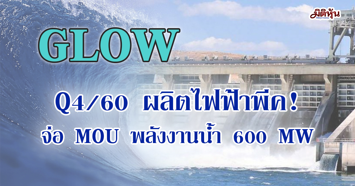ผู้สื่อข่าว “มิติหุ้น” รายงานว่า บมจ.โกลว์ พลังงาน หรือ GLOW โดยนายปจงวิช พงษ์ศิวาภัย รองกรรมการผู้จัดการใหญ่สายการเงิน เปิดเผยว่า ปัจจุบันบริษัทมีกำลังการผลิตไฟฟ้าที่จ่ายไฟฟ้าเชิงพาณิชย์ หรือ COD รวมทั้งหมด 3,500 เมกะวัตต์ โดยในไตรมาส 4/2560 เป็นไตรมาสของการผลิตไฟฟ้าที่มีศักภาพสูงสุด 100% ซึ่งเป็นปัจจัยในทางที่ดีของผลประกอบการ