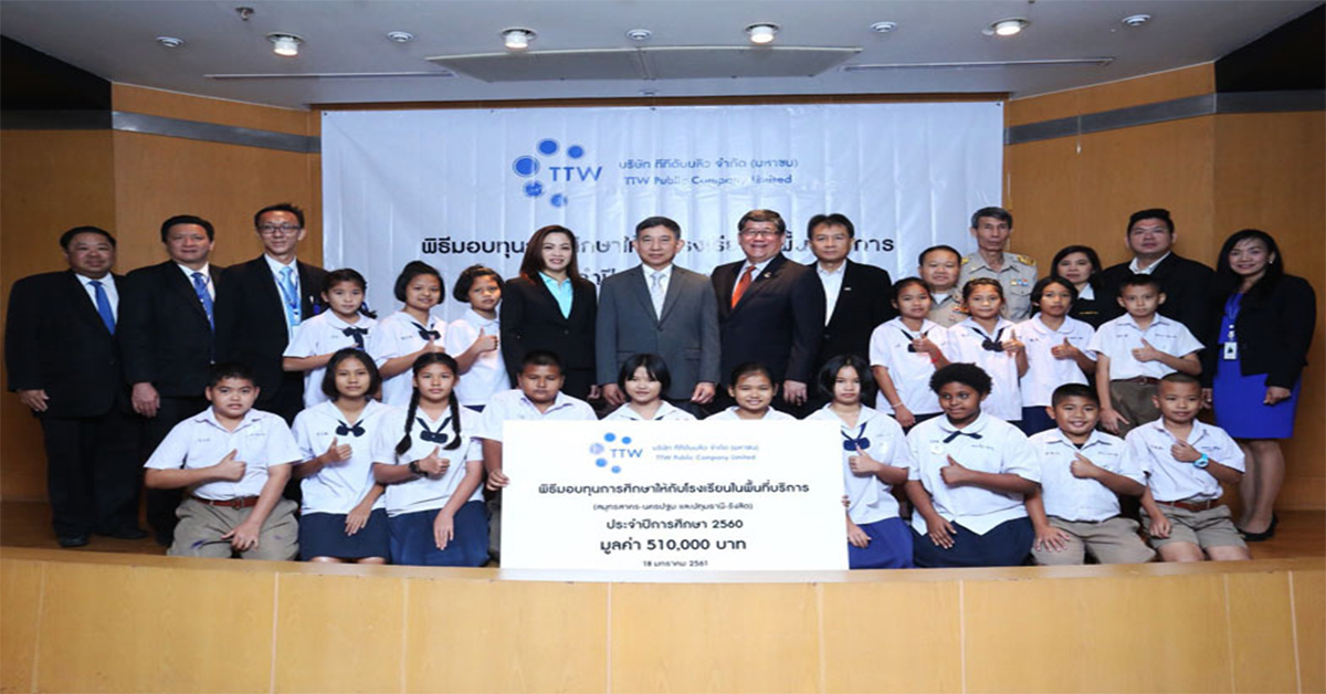 บริษัท ทีทีดับบลิว จำกัด (มหาชน) ผู้ผลิตน้ำประปาภาคเอกชนรายใหญ่ที่สุดของประเทศให้กับการประปาส่วนภูมิภาค (กปภ.) ส่งจ่ายให้กับประชาชนในพื้นที่สมุทรสาคร-นครปฐม และปทุมธานี-รังสิต ได้เล็งเห็นถึงความสำคัญของการศึกษา ซึ่งถือเป็นสิ่งสำคัญที่สุดในการพัฒนาคน พัฒนาประเทศ โดยได้จัดพิธีมอบทุนการศึกษาให้กับนักเรียนในพื้นที่บริการของบริษัทฯ ที่มีผลการเรียนดี เพื่อช่วยเพิ่มโอกาสทางการศึกษา และสร้างความภาคภูมิใจ รวมถึงแบ่งเบาภาระของผู้ปกครองได้อีกทางหนึ่ง โดยได้รับเกียรติจากพลอากาศเอกประจิน จั่นตอง รองนายกรัฐมนตรี เป็นประธานเปิดงาน รวมถึงผู้บริหารของกระทรวงศึกษาธิการให้เกียรติเข้าร่วมงาน