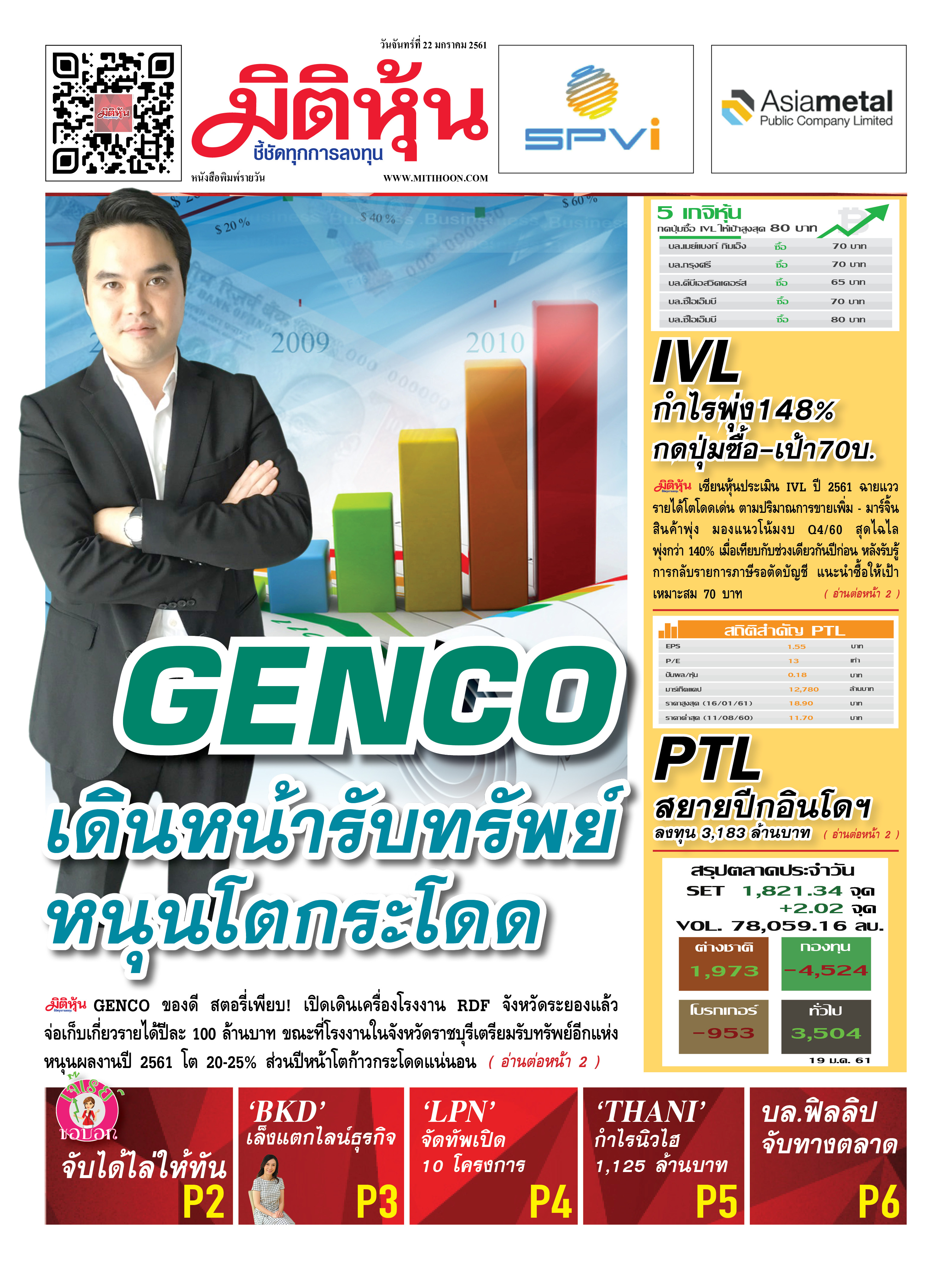 นสพ. “มิติหุ้น” ชี้ชัดทุกกการลงทุน ฉบับวันที่ 22 มกราคม 2561