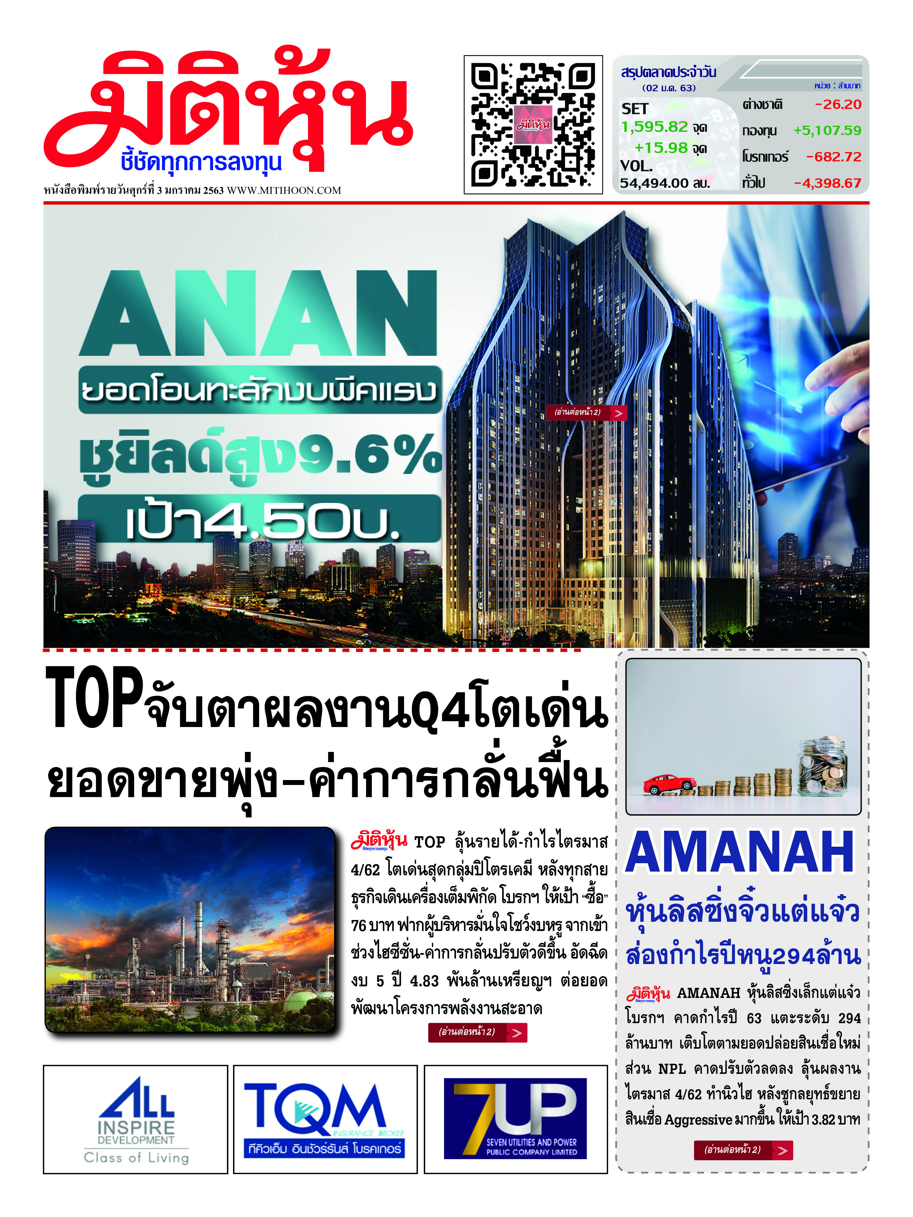 นสพ.มิติหุ้น “ชี้ชัดทุกการลงทุน” ฉบับวันที่ 3 มกราคม 2563