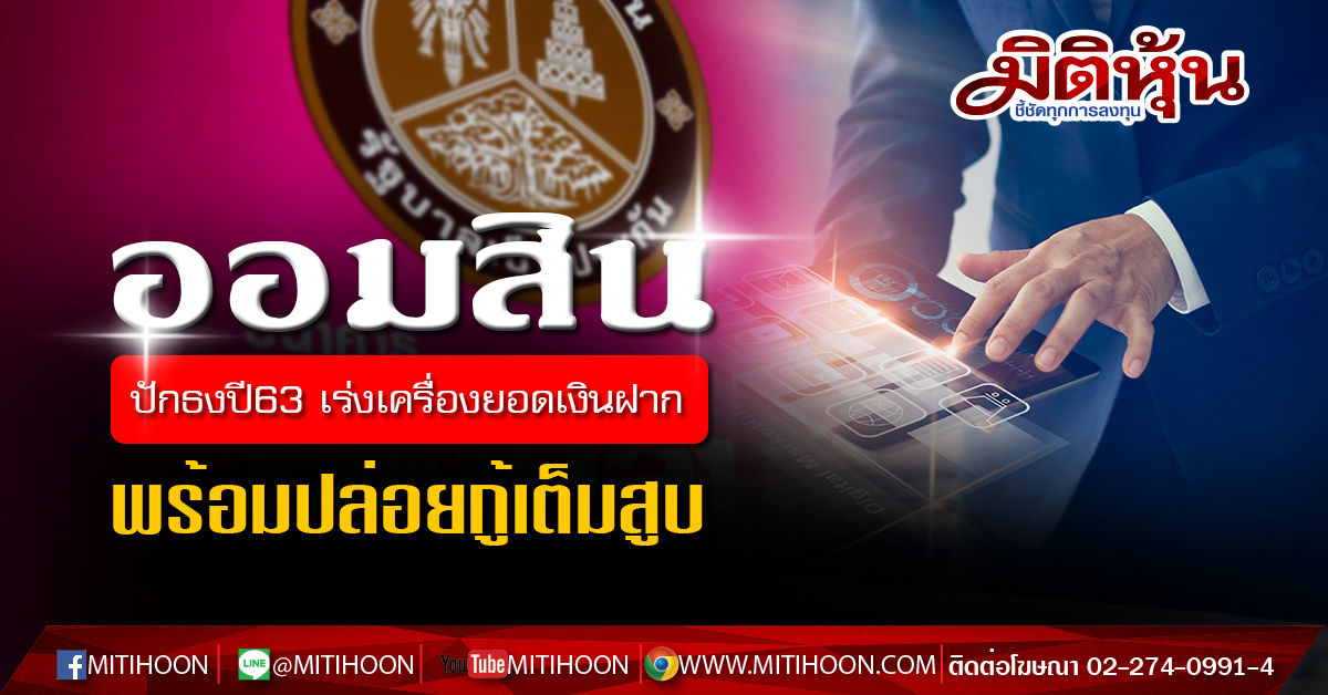 ธ.ออมสิน ตั้งเป้าปี 63 ยอดปล่อยกู้แตะ 5.5 แสนลบ. โตเพิ่ม 4-5% เร่งอัพยอดเงินฝากเข้าพอร์ตอีกกว่า 7.5 หมื่นลบ.