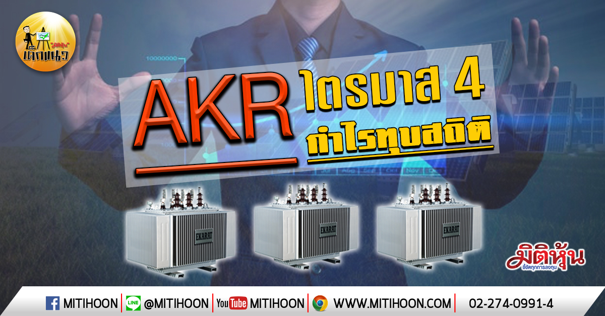 AKR เข้าตาเด็กแนว เพราะว่าหุ้นหม้อแปลงที่มีคำสั่งซื้อมากๆ นั้น ใน Q4 จะเป็นช่วงของการส่งมอบงานตามสัญญาให้ครบ และจะเป็นไตรมาส high season หากย้อนหลัง Q4/61 บริษัท ขาดทุนหนักกว่า 270 ล้านบาท เพราะต้องตั้งสำรองรายการสินค้า แต่งวดนี้ตรงกันข้ามจะมีกำไรราว 40-60 ล้านบาท ซึ่งจะทำให้กำไรโตรุนแรงมากมายมหาศาลกว่า 300,000% YOY และเป็นกำไรต่อเนื่อง 3 ไตรมาสติดต่อกันและดีต่อในปี 63 จากรายได้ขายแผงโซล่าร์ด้วย แถมซุ่มทำดีลโรงไฟฟ้าด้วย จับตาดูให้ดี