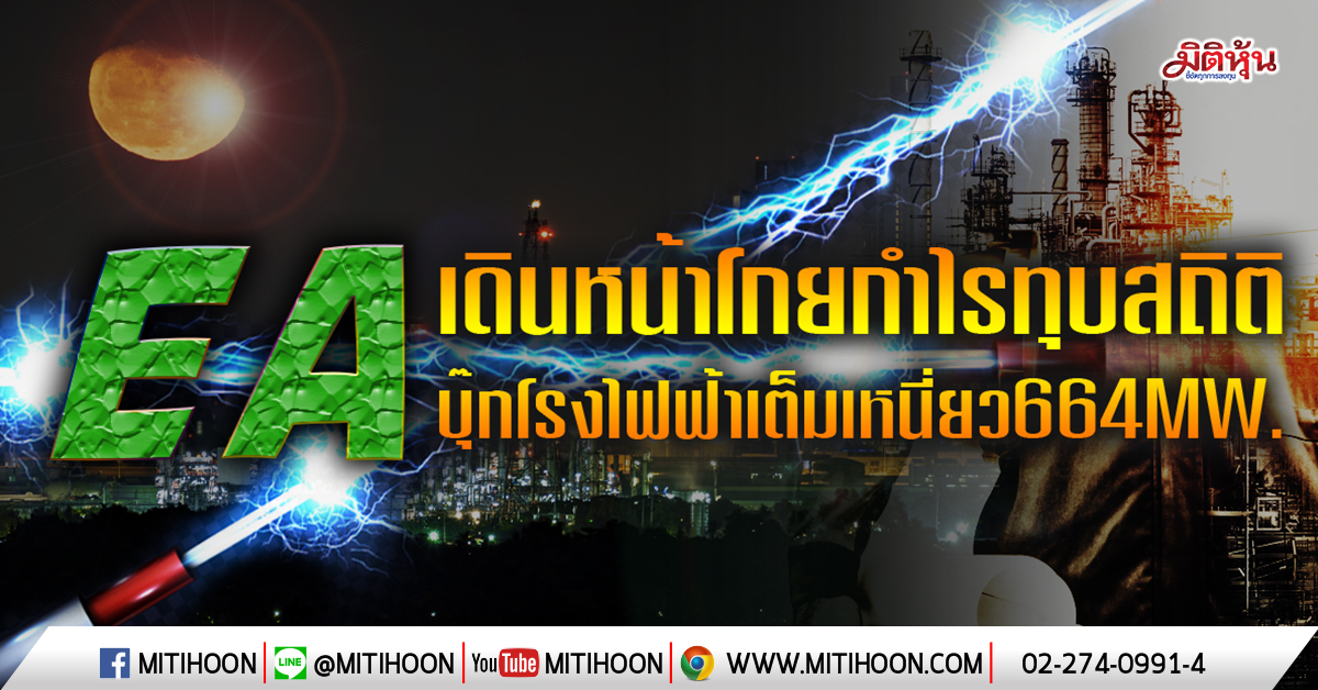 มิติหุ้น- EA เตรียมแถลงเปิดตัวแอพพลิเคชั่นซื้อขายปาล์มครั้งแรกในโลก จันทร์ 27 ม.ค.นี้ มั่นใจผลงานปี 63 กำไรทุบสถิติใหม่ หลังบุ๊กรายได้โรงไฟฟ้าเต็มเหนี่ยว 664 MW จ่อรับรู้รายได้ EV Car 5,000 คัน ส่วนไบโอดีเซลฟื้นบวกแรง โบรกฯ แนะนำ “ซื้อ” ให้เป้า 60.25 บาท