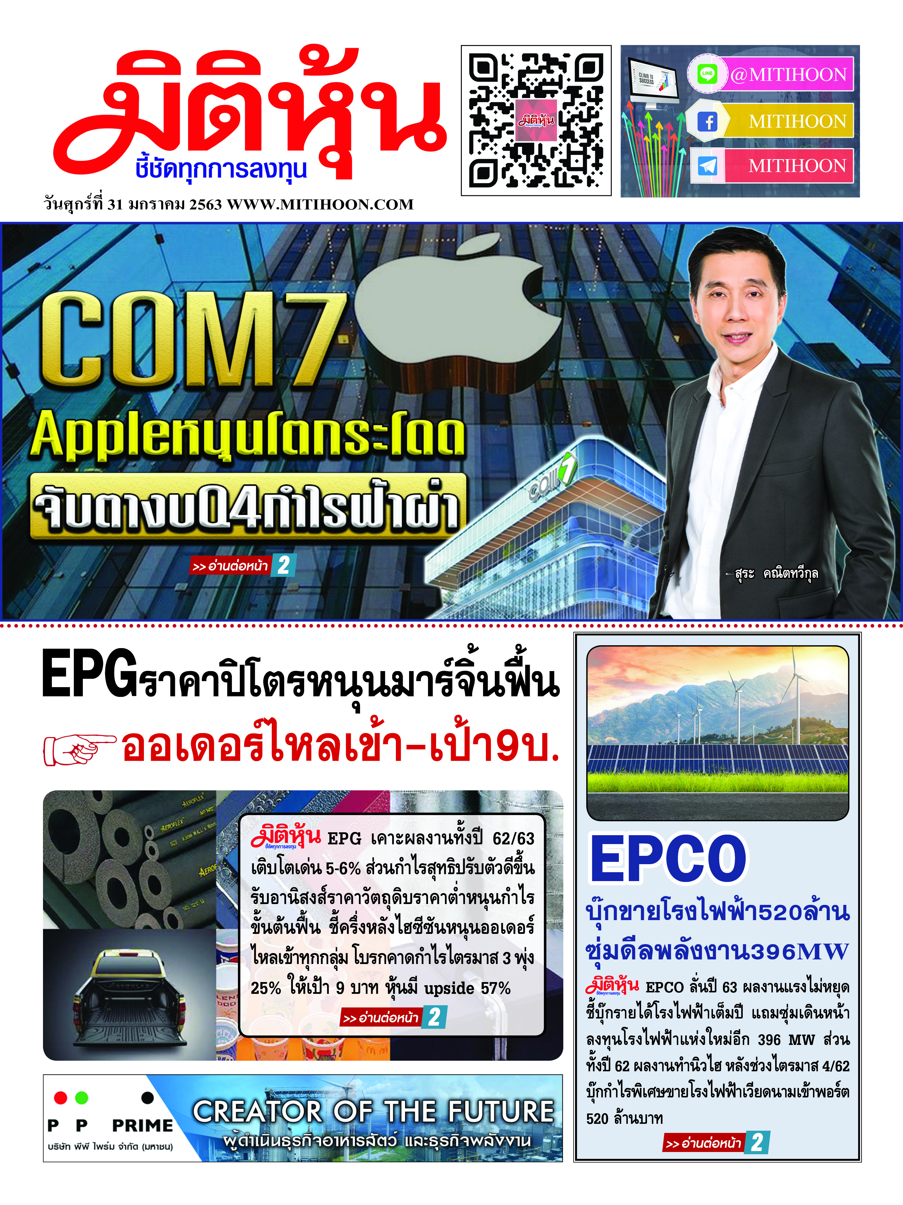 นสพ.มิติหุ้น “ชี้ชัดทุกการลงทุน” ฉบับวันที่ 31 มกราคม 2563