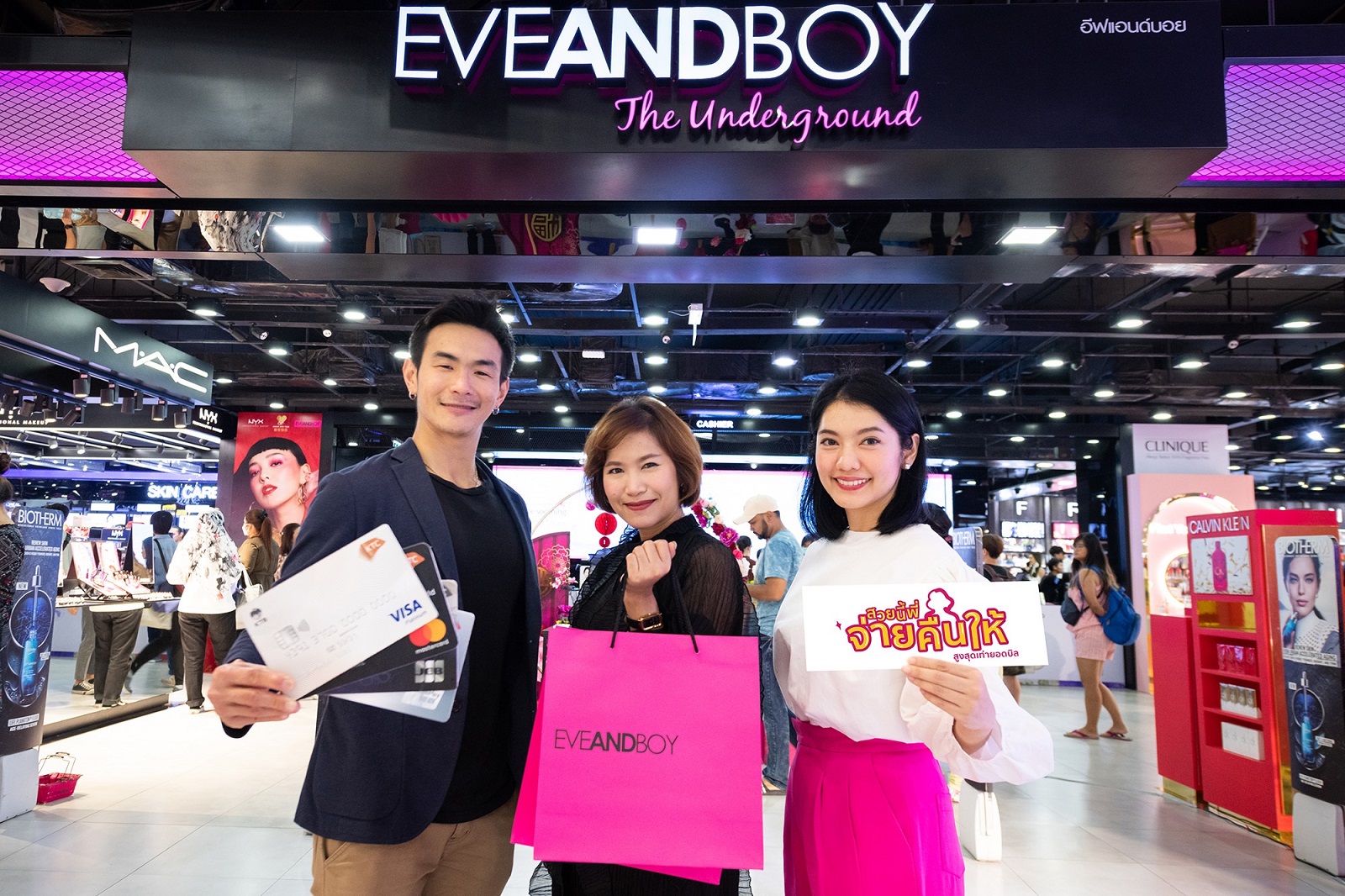 มิติหุ้น-นายสรชัช ศรีลมูล ผู้จัดการอาวุโส “เคทีซี” หรือ บริษัท บัตรกรุงไทย จำกัด (มหาชน) จับมือ นางสาวปลื้มมนัส พันธุ์ฤทธิ์ ผู้จัดการฝ่ายการตลาด บริษัท อีฟ แอนด์ บอย จำกัด มอบความสวยด้วย ไอเท็มความงามตอบโจทย์ทุกไลฟ์สไตล์ในราคาสุดคุ้ม พร้อมสิทธิพิเศษเพื่อสมาชิกบัตรเครดิตเคทีซี ที่ “อีฟแอนด์บอย” (EVEANDBOY) ทั้ง 11 สาขาทั่วประเทศไทย เมื่อช้อปและชำระผ่านบัตรฯ ครบ 1,000 บาทขึ้นไปต่อเซลส์สลิป รับ e – Coupon เครดิตเงินคืนสูงสุดเต็มจำนวนเท่ายอดบิล ตั้งแต่วันที่ 1 กุมภาพันธ์ – 30 เมษายน 2563