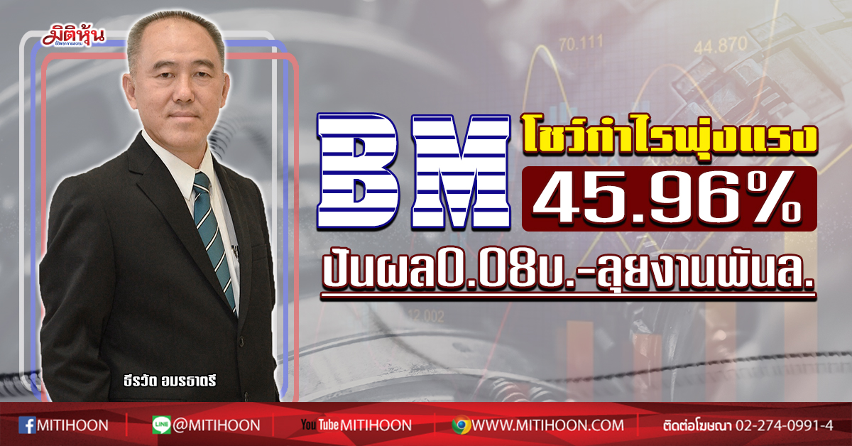 แม้รายได้จาการขายและบริการอยู่ที่ 907.72 ล้านบาท ลดลง 7.86% จากปีก่อน แต่บริษัทก็มีอัตรากำไรขั้นต้นเพิ่มขึ้น ซึ่งเป็นผลมาจากการควบคุมต้นทุนการผลิตสินค้าได้ดี รวมถึงการควบคุมค่าใช้จ่ายในการผลิต และรับทรัพย์ “บ.นิตโต้ โคเกียวบีเอ็ม (ประเทศไทย)” ที่มีการรับรู้ส่วนแบ่งกำไรจากโครงการรถไฟฟ้าสายสีแดง ทั้งนี้ BM มีมติอนุมัติจ่ายเงินปันผลงวดปี 62 (ม.ค.-ธ.ค.62) อัตราหุ้นละ 0.08 บาท ขึ้น XD วันที่ 17 มี.ค.63 และจ่ายปันผลวันที่ 15 พ.ค.63