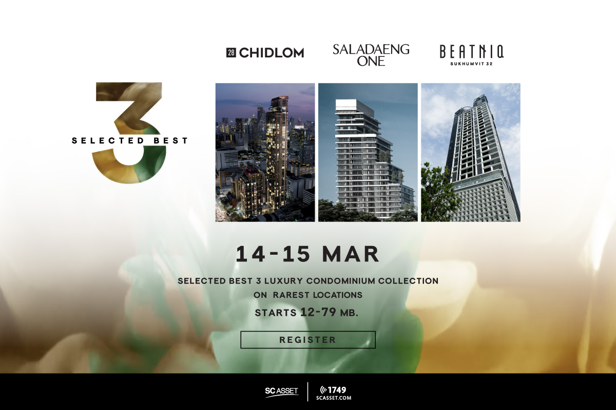 สัมผัสความพิเศษของ “Selected Best 3” “ลักซ์ชัวรีคอนโดที่ดีที่สุด 3 โลเคชั่น จาก SC Asset” ในทำเล ใจกลางย่านธุรกิจของกรุงเทพมหานคร ได้แล้ววันนี้ที่สำนักงานขายโครงการในทุกทำเล สอบถามเพิ่มเติมที่โทร.1749