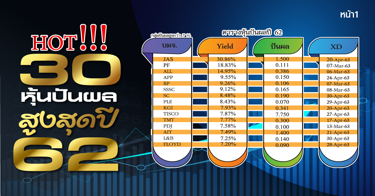 30 หุ้นปันผลสูงสุดปี 62