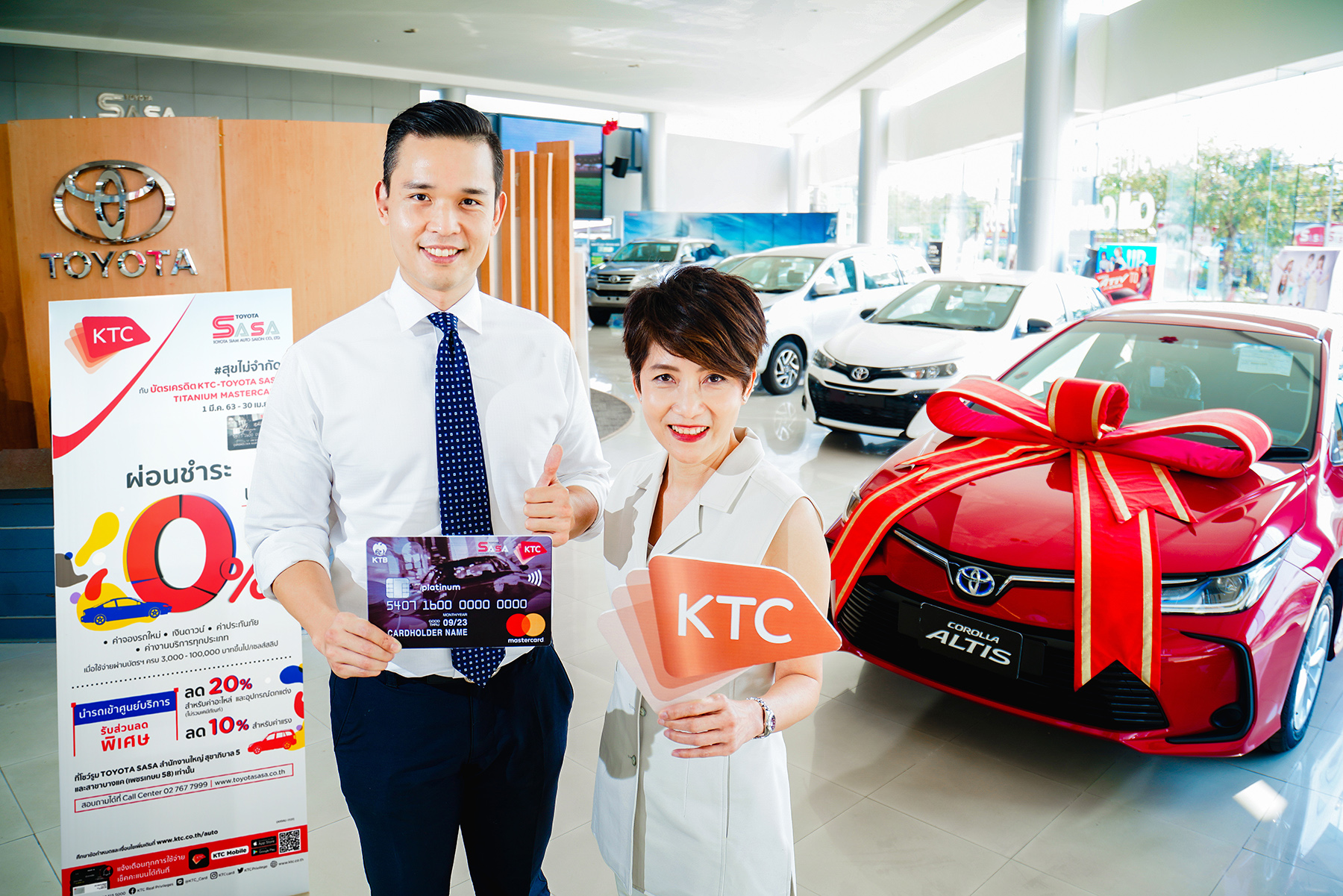 มิติหุ้น-KTCมอบ 3 สิทธิพิเศษคุ้ม สำหรับสมาชิกบัตรเครดิต “เคทีซี-โตโยต้า ซาซ่า” นางประณยา นิถานานนท์ ผู้อำนวยการ – ธุรกิจบัตรเครดิต “เคทีซี” หรือ บริษัท บัตรกรุงไทย จำกัด (มหาชน) ร่วมกับ นายศึกษิษฏ์ ศรีจอมขวัญ กรรมการผู้จัดการ บริษัท โตโยต้า สยามออโต้ ซาลอน จำกัด มอบสิทธิพิเศษเพื่อสมาชิกบัตรเครดิต “เคทีซี-โตโยต้า ซาซ่า แพลตินัม มาสเตอร์การ์ด” (KTC – TOYOTA SASA PLATINUM MASTERCARD) โดยเฉพาะถึง 3 คุ้ม เมื่อใช้บริการที่โชว์รูม TOYOTA SASA สำนักงานใหญ่ สุขาภิบาล 5 และสาขาบางแค (เพชรเกษม 58) ระหว่างวันที่ 1 มีนาคม 2563 – 30 เมษายน 2563 คุ้ม 1 รับเครดิตเงินคืนสูงสุด 19% โดยลงทะเบียนตามเงื่อนไขที่กำหนด คุ้ม 2 รับบริการผ่อนชำระ 0% นาน 10 เดือน สำหรับค่าจองรถใหม่ เงินดาวน์ ค่าประกันภัย และค่าบริการทุกประเภท เมื่อมียอดใช้จ่ายผ่านบัตรฯ 3,000 – 100,000 บาทขึ้นไปต่อเซลส์สลิป คุ้ม 3 รับส่วนลด 20% สำหรับค่าอะไหล่อุปกรณ์ตกแต่ง และส่วนลด 10% สำหรับค่าแรง