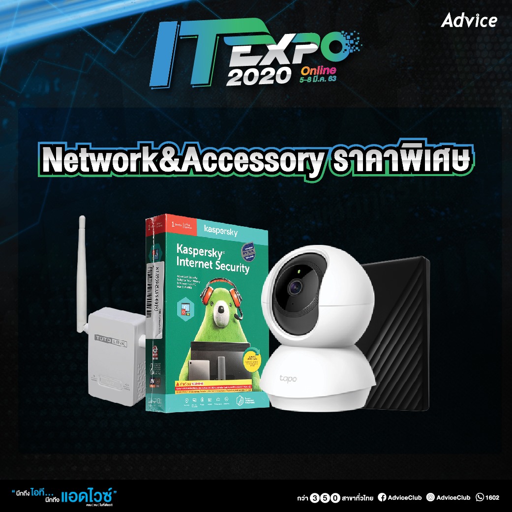 พร้อมกันนี้ยังส่งโปรโมชั่นและกิจกรรมนาทีทองลดสูงสุด 99% รวมทั้งเซ็ตคอมประกอบราคาพิเศษสุดๆ การันตีโดย นพ Extreme IT นักจัดสเปคคอมชั้นนำ ราคาเริ่มต้นเพียง 7,990 บาท และยังมีสินค้า Gaming Gear ครบครัน เท่ห์ โดดเด่น หรูหรา ราคาโดนใจ รวมทั้งจอมอนิเตอร์ ล้ำๆ ลดกระหนำ ครบทุกไซต์ ทุกฟังก์ชั่น เล่นเกม ดูหนัง เลือกสรรค์ได้ตามใจ หมวดสินค้า Network & Accessory ก็มีให้เลือกช้อป และยังเอาใจสายทำงานถ้าขณะนี้คอมพิวเตอร์ของคุณทำงานช้า กำลังหน่วง แอดไวซ์พร้อมเสริมงสินค้ากลุ่ม DIY ที่ยกขบวนมาพร้อมราคาสุดพิเศษด้วยเช่นกัน ขอเชิญมาอัพคอมกันได้เหมือนได้คอมใหม่กับทีมที่ปรึกษาของแอดไวซ์ โดยเข้าไปที่ www.advice.co.th/ITexpro2020 เริ่มตั้งแต่วันนี้ ถึง 8 มีนาคม 2563 เท่านั้น หรือสอบถามสั่งซื้อทางช่องทางไลน์ (LINE App) https://lin.ee/vEqHb2H หรือ https://itexpo.advice.co.th/