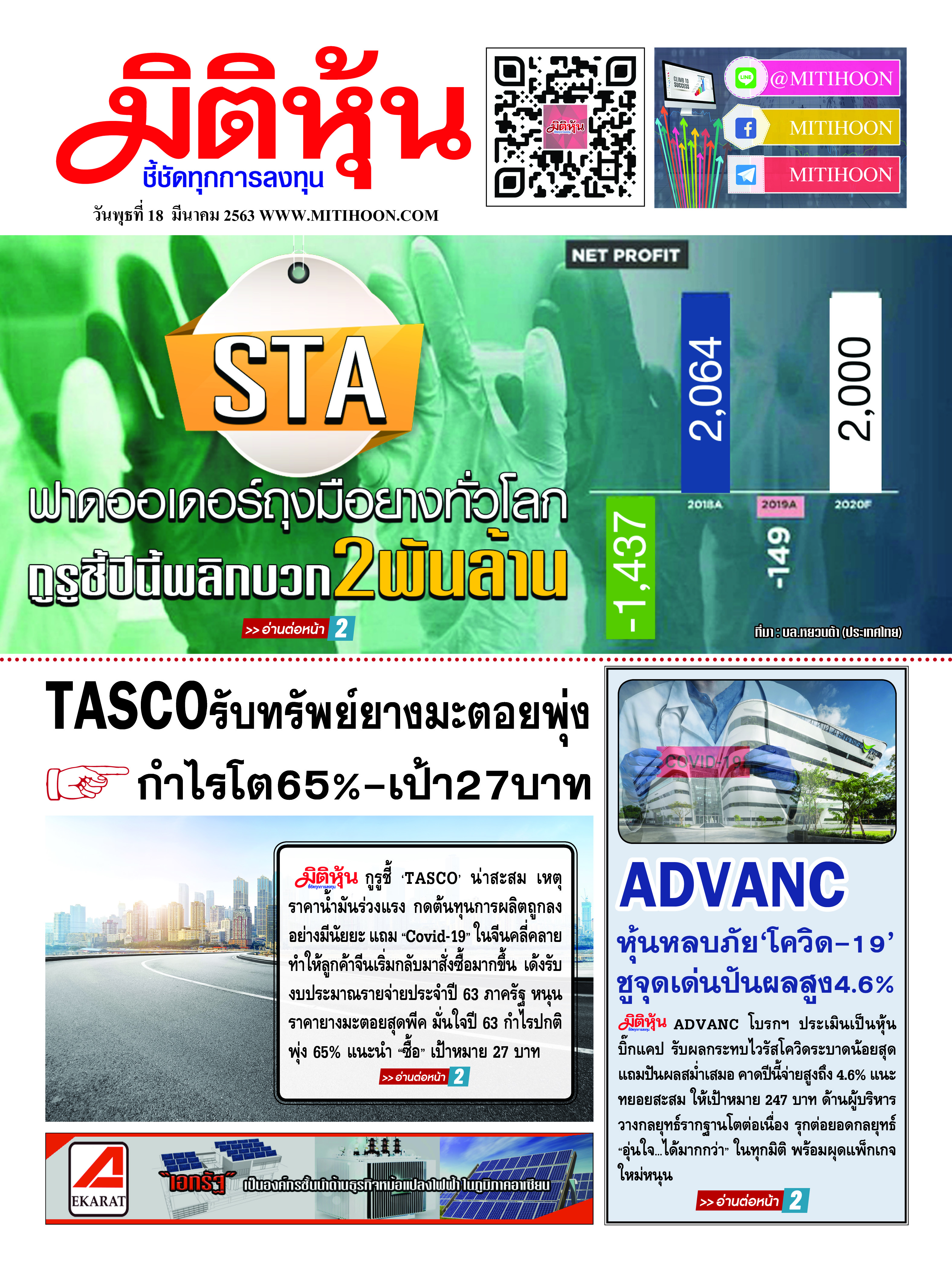 นสพ.มิติหุ้น “ชี้ชัดทุกการลงทุน” ฉบับวันที่ 18 มีนาคม 2563