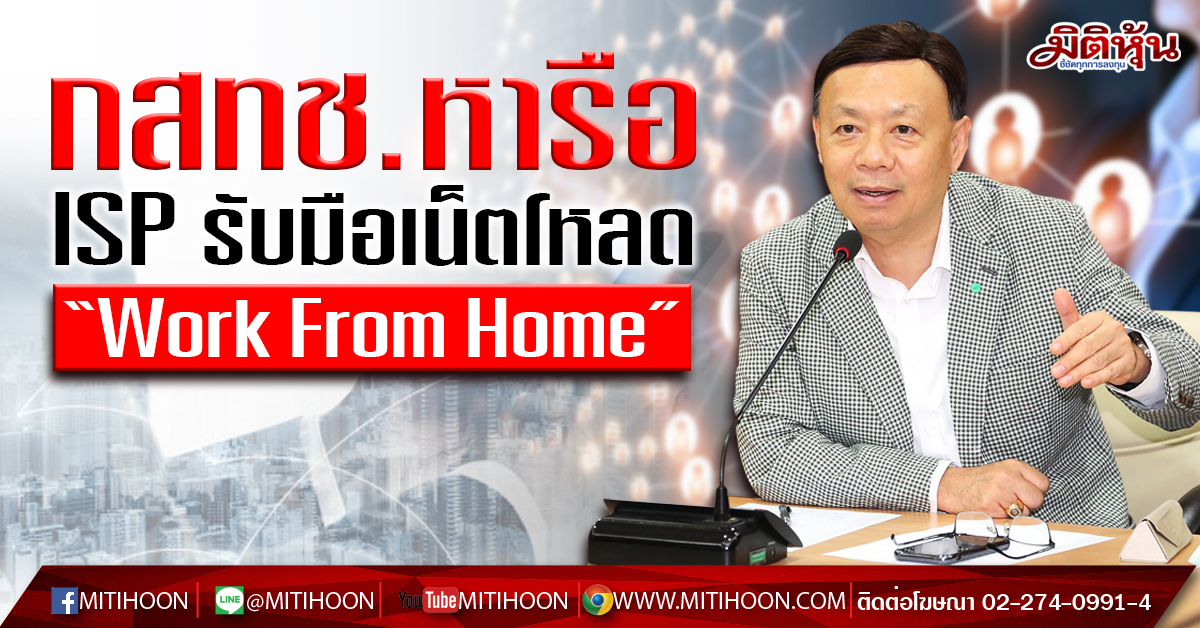 มิติหุ้น – นายฐากร ตัณฑสิทธิ์ เลขาธิการคณะกรรมการกิจการกระจายเสียง กิจการโทรทัศน์ และกิจการโทรคมนาคมแห่งชาติ (เลขาธิการ กสทช.) กล่าวว่า วันนี้ (18 มี.ค. 2563) สำนักงาน กสทช. เชิญผู้ให้บริการอินเทอร์เน็ตบรอดแบนด์ และผู้ให้บริการโทรศัพท์เคลื่อนที่ (ผู้ให้บริการอินเทอร์เน็ตมือถือ) ทุกรายในประเทศ มาประชุมหารือแนวทางการสนับสนุนนโยบาย Work from Home ของรัฐบาล โดยที่ประชุมวางแนวทาง ดังนี้