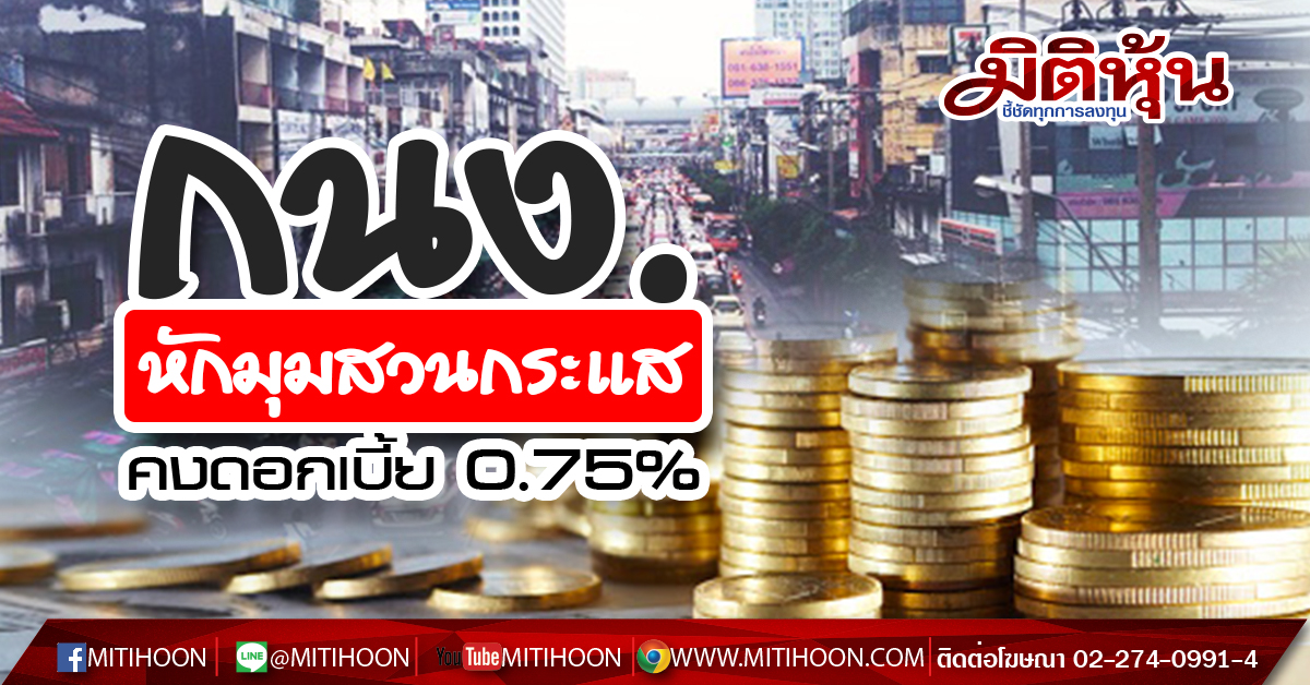 ผู้สื่อข่าว มิติหุ้น รายงานว่า ที่ประชุม กนง.มีมติ 4 ต่อ 2 คงอัตราดอกเบี้ยนโยบาย 0.75% นอกจากนี้มองแนวโน้มเศรษฐกิจปีนี้หดตัวแรง-อัตราเงินเฟ้ออาจติดลบจากไวรัสโควิดระบาด