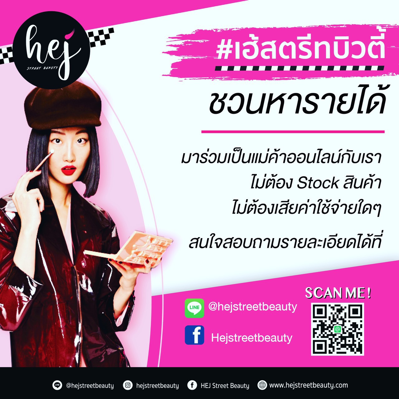 มิติหุ้น-HEJ Street Beauty ร้านเครื่องสำอางมัลติแบรนด์ชั้นนำของเมืองไทย ร่วมเป็นส่วนหนึ่งในการฝ่าวิกฤติโควิด-19 ชวนคนว่างงานร่วมขายสินค้าผ่านออนไลน์ ชี้มีรายได้ง่ายๆแบบไม่ต้อง Stock สินค้า ค่าคอมมิชชั่นแรง ทำงานได้ทุกที่-ทุกเวลา