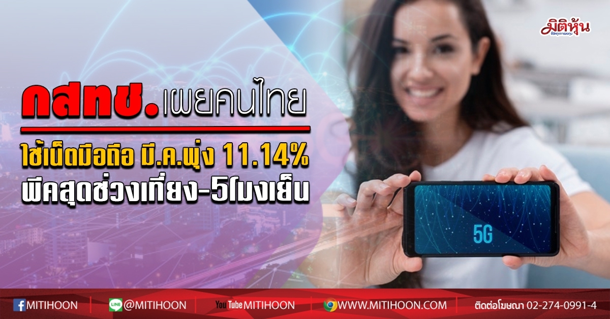 ผู้สื่อข่าว “มิติหุ้น” รายงานว่า สำนักงานคณะกรรมการกิจการกระจายเสียง กิจการโทรทัศน์ และกิจการโทรคมนาคมแห่งชาติ (กสทช.) โดยนายฐากร ตัณฑสิทธิ์ เลขาธิการ กสทช. เปิดเผยว่า ข้อมูลเกี่ยวกับการใช้งานดาต้า หรือ อินเตอร์เน็ตผ่านระบบมือถือ ของคนไทยในช่วงสถานการณ์การแพร่ระบาดของเชื้อไวรัสโคโรน่า (COVID-19) ในช่วงเดือน มี.ค.63 อ้างอิงข้อมูลที่มาจากผู้ประกอบการโทรคมนาคมทั้ง 3 ค่าย มียอดรวมทั้งสิ้น 795,236 เทราไบท์ เพิ่มขึ้นจากเดือน ก.พ.ที่มียอดรวม 715,509 เทราไบท์ หรือเพิ่มขึ้น 11.14%