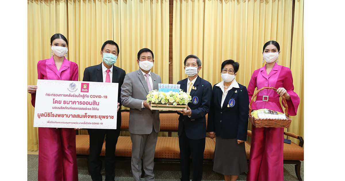ธนาคารออมสินได้ตระหนักถึงมาตรการความปลอดภัยดังกล่าว และมีความห่วงใยประชาชนต่อสถานการณ์การแพร่ระบาดของเชื้อไวรัสที่ยังมีแนวโน้มการระบาดเพิ่มขึ้นอย่างต่อเนื่อง เพื่อเป็นการให้ความร่วมมือและปฏิบัติตามมาตรการความปลอดภัยต่อสุขภาพอนามัยของประชาชนอย่างเคร่งครัด โดยในโอกาสที่วันที่ 1 เมษายน 2563 ที่ผ่านมา เป็นวันคล้ายวันสถาปนาธนาคารออมสิน ครบ 107 ปี ธนาคารฯ จึงได้ส่งมอบแอลกอฮอล์เจลตามโครงการกระทรวงการคลังร่วมใจต้านภัย COVID-19 ให้แก่บุคลากรทางการแพทย์ และหน่วยงานด้านสาธารณสุข ได้แก่ มูลนิธิโรงพยาบาลสมเด็จพระยุพราช โรงพยาบาลรามาธิบดี โรงพยาบาลทหารผ่านศึก โรงพยาบาลราชวิถี โรงพยาบาลบ้านแพ้ว (องค์การมหาชน) มูลนิธิธรรมาภิบาลทางการแพทย์ และสภากาชาดไทย