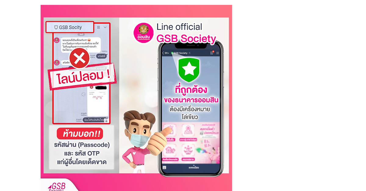 จากสถานการณ์ข้างต้น ได้มีกลุ่มมิจฉาชีพ แฝงตัวอยู่ในสื่อโซเชียล โดยได้ปลอมเพจและไลน์ ธนาคารออมสิน GSB Society และเข้าไปแสดงความคิดเห็นพร้อมชักชวนให้เป็นเพื่อนในไลน์ เสมือนว่าตนเองเป็นพนักงานธนาคารที่จะให้คำแนะนำ ให้ความช่วยเหลือได้และหลอกถามข้อมูลทางการเงิน เช่น ขอทราบเลขที่สมุดบัญชีเงินฝาก เลขที่บัตรประจำตัวประชาชน รหัสผ่าน MyMo และรหัสผ่าน OTP สุดท้ายอาจสวมรอยถอนเงินออกจากบัญชีได้ ทั้งนี้ธนาคารได้เฝ้าระวังและติดตามความเคลื่อนไหวไลน์และเฟสบุ๊คแฟนเพจที่มีการนำโลโก้ธนาคารออมสินไปใช้ในสื่อโซเชียลอย่างใกล้ชิด หากทำให้ธนาคารเกิดความเสียหายแก่ภาพลักษณ์และชื่อเสียง ธนาคารจะดำเนินตามกฎหมาย
