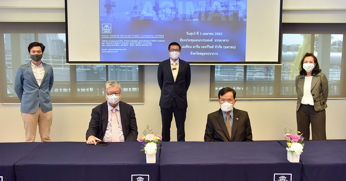 มิติหุ้น-นายประกิต ประทีปะเสน (แถวนั่ง ซ้าย) ประธานกรรมการ และนายสุรเดช ตัณฑ์ไพบูลย์ (แถวยืนกลาง) ประธานเจ้าหน้าที่บริหาร บริษัท เอเชียน มารีน เซอร์วิสส์ จำกัด (มหาชน) หรือ ASIMAR พร้อมด้วยคณะกรรมการบริษัทฯ ถ่ายภาพเป็นที่ระลึกร่วมกันในงานประชุมสามัญผู้ถือหุ้นประจำปี 2563 ณ ห้องประชุมอเนกประสงค์ บมจ.เอเชียน มารีน เซอร์วิสส์ เมื่อวันที่ 3 เมษายน 2563 ที่ผ่านมา โดยที่ประชุมผู้ถือหุ้นมีมติอนุมัติการจ่ายเงินปันผลงวดผลการดำเนินงานปี 2562 ให้แก่ผู้ถือหุ้นในอัตรา 0.05 บาท/หุ้น กำหนดจ่ายเงินปันผลในวันที่ 30 เมษายน 2563 นี้ พร้อมมาตรการคัดกรองป้องกันโควิด-19 สำหรับผู้เข้าร่วมประชุมอย่างเข้มงวด