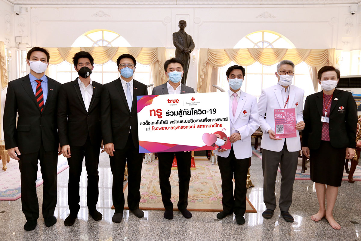 มิติหุ้น – 9 เมษายน 2563 – กลุ่มทรู โดย นายพิชิต ธันโยดม (กลาง) หัวหน้าคณะผู้บริหารด้านธุรกิจองค์กร พร้อมด้วยคณะผู้บริหาร บมจ.ทรู คอร์ปอเรชั่น ส่งมอบแพลตฟอร์มระบบคัดกรองเบื้องต้น ประเมินความเสี่ยงติดเชื้อโควิด-19 พร้อมด้วยอุปกรณ์ เทคโนโลยี และระบบสื่อสารเพื่อการแพทย์ แก่ โรงพยาบาลจุฬาลงกรณ์ สภากาชาดไทย นำโดย ศ.นพ.สุทธิพงศ์ วัชรสินธุ (ที่ 3 จากขวา) ผู้อำนวยการ รับมอบบริการ เพื่อนำไปใช้เพิ่มประสิทธิภาพบริการทางการแพทย์ในการให้บริการประชาชน โดยเฉพาะในช่วงสถานการณ์การแพร่ระบาดโรคโควิด-19