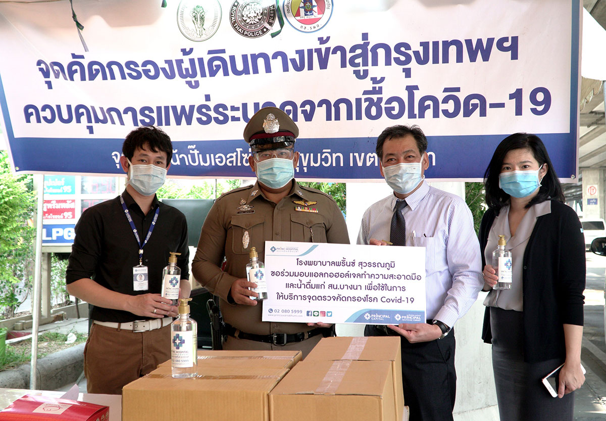 มืติหุ้น – โรงพยาบาลพริ้นซ์ สุวรรณภูมิ นำโดยนายแพทย์วรัญญ์ เทียนส่ง (ที่ 2 จากขวา) ผู้อำนวยการโรงพยาบาลพริ้นซ์ สุวรรณภูมิ และ ดร. อัจฉรา รัตนพันธ์ศรี (ที่ 1 จากขวา) ผู้ช่วยกรรมการผู้จัดการ บริษัท พริ้นซิเพิล แคปิตอล จำกัด (มหาชน) (PRINC) พร้อมด้วยคณะผู้บริหารและแพทย์ ร่วมใจสู้ภัยโรคติดเชื้อไวรั