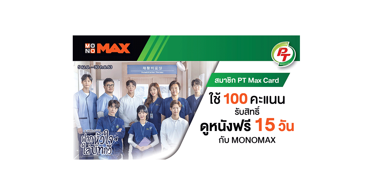 มิติหุ้น- “MONOMAX” (โมโนแมกซ์) ผู้ให้บริการดูหนังออนไลน์ ในเครือโมโน กรุ๊ป ร่วมกับ “พีทีแมกซ์การ์ด” จัดกิจกรรมสุดพิเศษ ส่งความบันเทิงให้กับคุณลูกค้าเจ้าของบัตร PT Max Card ได้ดูหนังฟรี! ถึงบ้าน เพียงใช้ 100 คะแนนจากบัตร PT Max Card ผ่านแอปพลิเคชั่นแมกซ์รีวอร์ด รับทันทีสิทธิ์ดูหนังออนไลน์แบบถูกลิขสิทธิ์ที่ MONOMAX (โมโนแมกซ์) ฟรี 15 วัน สนใจร่วมกิจกรรมได้ตั้งแต่วันนี้ ถึงวันที่ 30 กันยายนนี้ ติดตามรายละเอียดเพิ่มเติม โทร PT Call Center 1614 ทุกวัน เวลา 08.00-20.00 น. หรือ เฟสบุ๊คแฟนเพจ MONOMAX