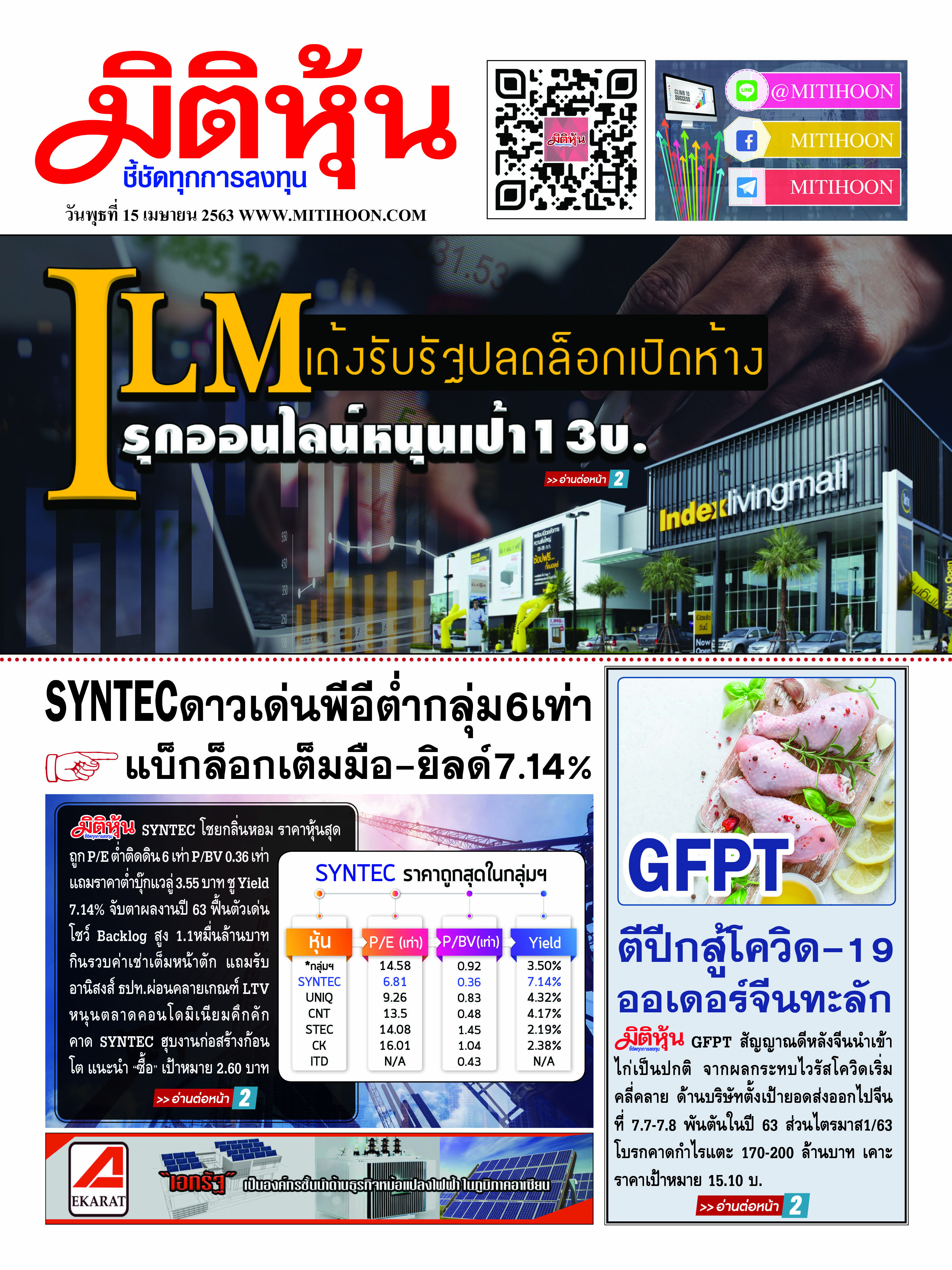 นสพ.มิติหุ้น “ชี้ชัดทุกการลงทุน” ฉบับวันที่ 15 เมษายน 2563