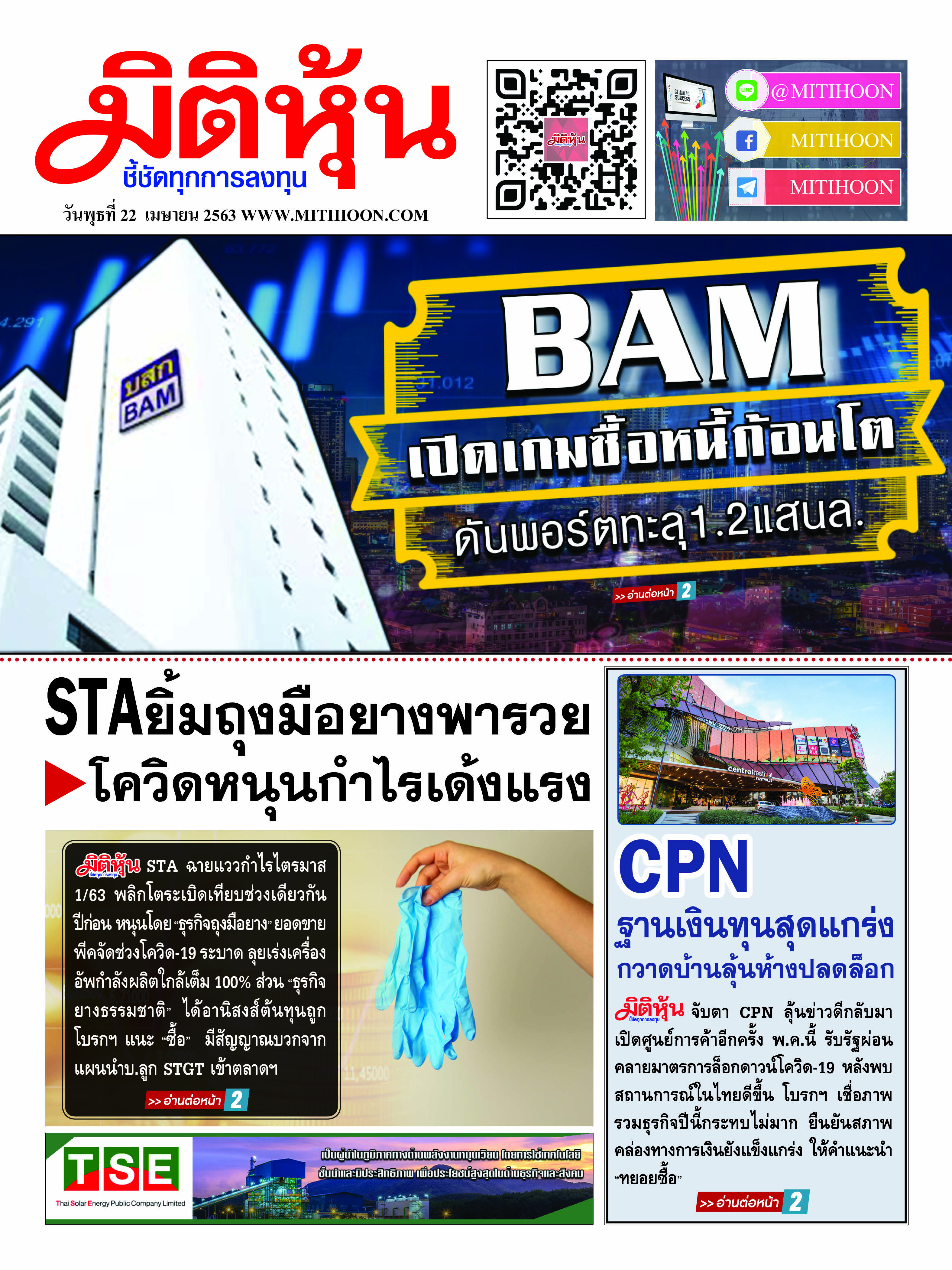 นสพ.มิติหุ้น “ชี้ชัดทุกการลงทุน” ฉบับวันที่ 22 เมษายน 2563