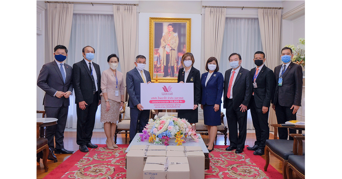 มิติหุ้น-นางสาววราภรณ์ กุลสวัสดิ์ภักดี (ที่ 5 จากขวา ) กรรมการอิสระ บริษัท ไทยวาโก้ จำกัด (มหาชน) ในเครือสหพัฒน์ พร้อมด้วยนางอรอนงค์ แสงพุ่มพงษ์ ( ที่ 4 จากขวา) กรรมการบริษัท ไทยวาโก้ จำกัด (มหาชน) และผู้พิพากษาสมทบในศาลทรัพย์สินทางปัญญาและการค้าระหว่างประเทศกลาง ส่งมอบหน้ากากอนามัยวาโก้ จำนวน 10,000 ชิ้น ให้กับนายไสลเกษ วัฒนพันธุ์ ( ที่ 4 จากขวา) ประธานศาลฎีกา และ นางเมทินี ชโลธร (ที่ 3 จากซ้าย) รองประธานศาลฎีกา เพื่อนำไปแจกจ่ายให้กับบุคลากรของศาลยุติธรรม ประชาชน คู่ความ และพยานที่มาศาลแต่ไม่มีหน้ากากสวมใส่ ป้องกันการแพร่ระบาดของโรคโควิด-19 ซึ่งหน้ากากอนามัยดังกล่าวผลิตจากผ้าสเปเซอร์ เนื้อผ้าผลิตจากเส้นใยไนลอนขนาดเล็กระดับไมโครไฟเบอร์ และมีส่วนผสมของสเปนเด็กซ์หลอมละลายยึดติดกับโครงสร้างผ้า ทำให้หน้ากากมีความอ่อนนุ่ม ยืดหยุ่น กระชับ ช่วยป้องกันการกระจายของเชื้อไวรัสโควิด-19 และมีประสิทธิภาพในการกรองฝุ่น PM 2.5 สามารถซักทำความสะอาดและนำกลับมาใช้ซ้ำได้ตลอดอายุการใช้งาน