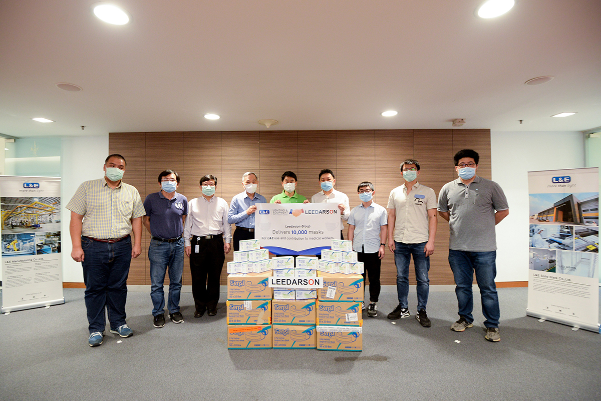 มิติหุ้น – นายปกรณ์ บริมาสพร (ที่ 4 จากซ้าย) ประธานกรรมการบริหาร และ นายกฤษดา ทรัพย์ทวยชน (ที่ 4 จากขวา) กรรมการบริหาร บริษัท ไลท์ติ้ง แอนด์ อีควิปเมนท์ จำกัด (มหาชน) หรือ L&E รับมอบหน้ากากอนามัย จำนวน 10,000 ชิ้น จาก บริษัท LEEDARSON IoT Technology Inc. ผู้พัฒนาผลิตภัณฑ์ IoT พันธมิตรทางการค้าจากประเทศจีน นำโดย Mr. Tim Wei, Mr. Enzo Liao, Mr. Jason Wu, Mr. Jack Chang, Mr. Wang ya jian และ Mr.Liu xiao Cong เพื่อมอบให้กับบริษัทฯ ใช้ในสาธาณกุศล แก่บุคคลากรทางการแพทย์ รวมถึงพนักงานของบริษัทสำหรับใช้ในสายการผลิตสินค้า IoT รองรับออเดอร์การส่งออกไปอเมริกา และสหภาพยุโรป ซึ่งขณะนี้อยู่ระหว่างการติดตั้งเครื่องจักร คาดว่าจะเริ่มผลิตและส่งออกได้ในไตรมาส 3 ปี 2563 นี้