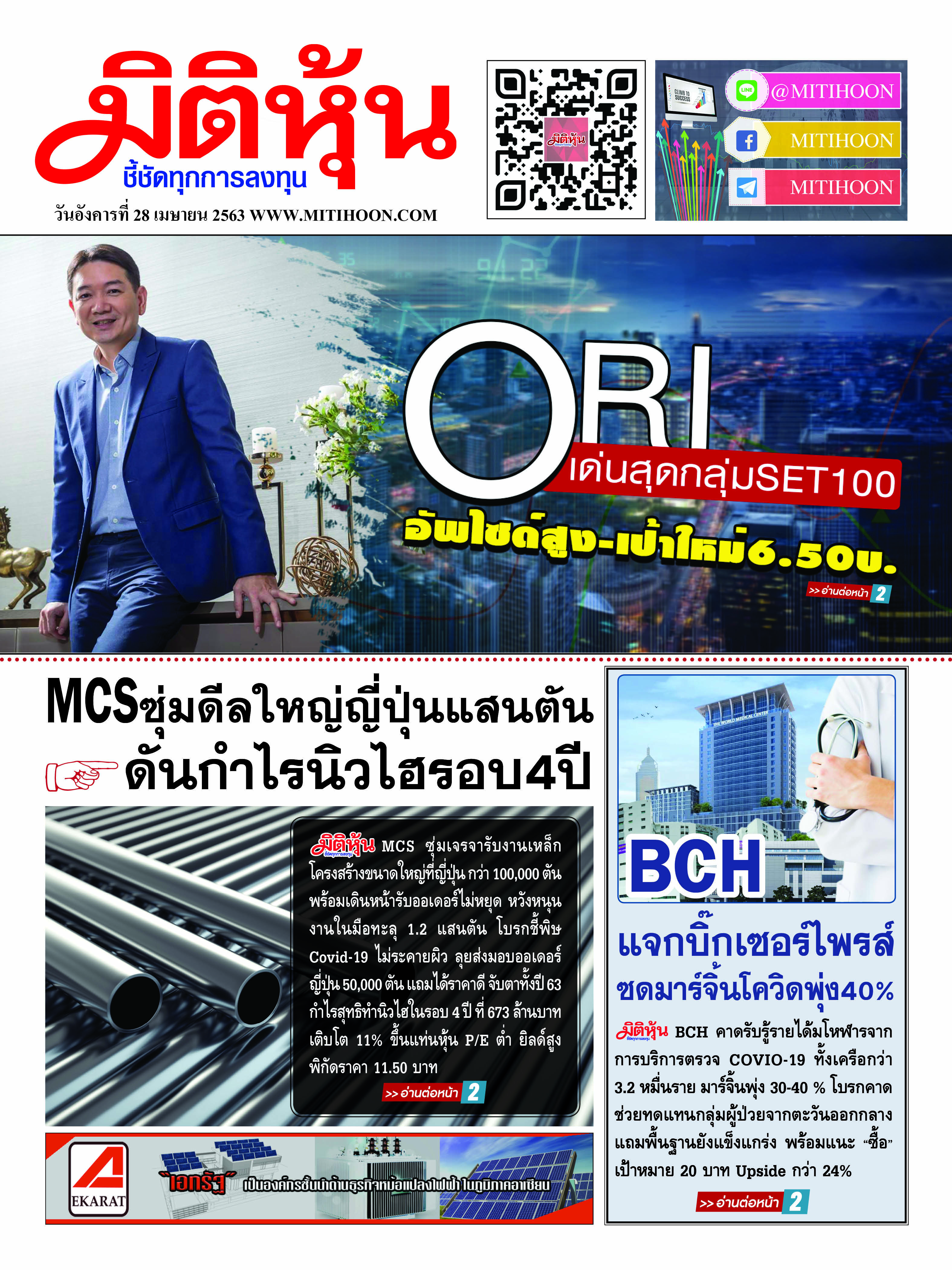 นสพ.มิติหุ้น “ชี้ชัดทุกการลงทุน” ฉบับวันที่ 28 เมษายน 2563