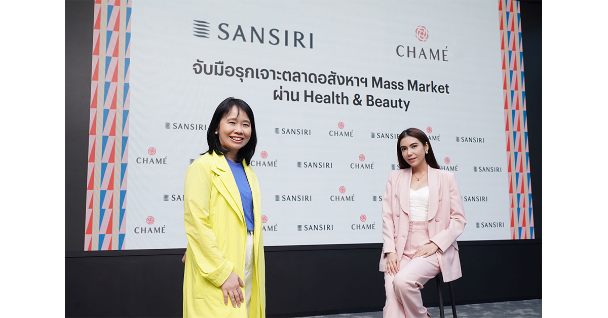 มิติหุ้น- เขย่าวงการ 2 ขั้ว ! ผู้นำธุรกิจแถวหน้าของไทย “แสนสิริ” ผู้พัฒนาอสังหาริมทรัพย์ชั้นนำ ฉีกทุกกรอบการทำตลาดอสังหาฯ ประกาศพันธมิตรก้าวสำคัญผนึก “ชาเม่” (CHAME’) ผู้นำด้านสุขภาพและความงาม เตรียมสยายปีกรุกตลาดแมสทั่วประเทศ ลุยเจาะฐานลูกค้าใหม่พร้อมปั้นภาพแบรนด์ที่เข้าถึงง่ายและต่อยอดภาพผู้นำด้านการพัฒนาที่อยู่อาศัยที่ให้ความสำคัญกับ Well-Being ชูแนวคิด“Health & Beauty Solution” ตอบโจทย์ด้านสุขภาพและความงามครบวงจร เชื่อเข้าถึงกลุ่มเป้าหมายคนรุ่นใหม่ที่มีไลฟ์สไตล์รักสุขภาพได้ผ่านฐานการตลาดที่แข็งแกร่งของแบรนด์ชาเม่ ศักยภาพองค์กรและผลิตภัณฑ์คุณภาพในพอร์ตโฟลิโอ