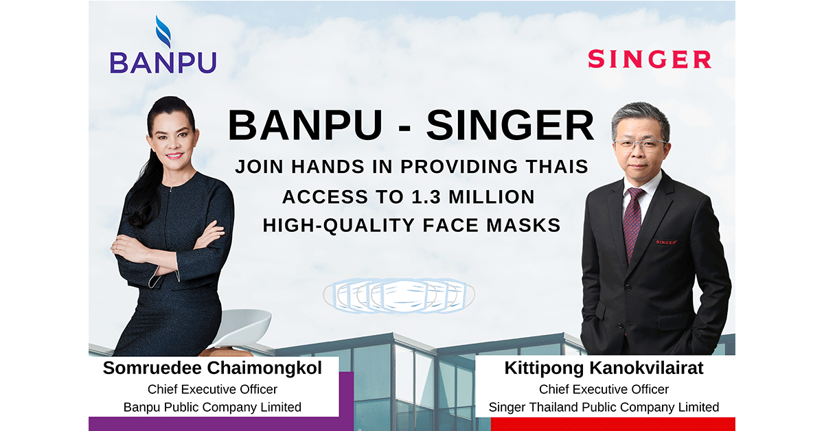 หรือ SINGER รับเป็นช่องทางในการจำหน่ายหน้ากากผ้าคุณภาพดีจำนวน 1,300,000 ชิ้น ให้ไปถึงประชาชน