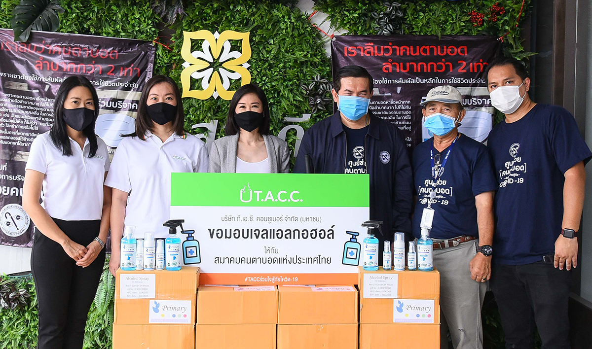 มิติหุ้น – บริษัท ที.เอ.ซี.คอนซูเมอร์ จำกัด (มหาชน) (TACC) นำโดย คุณสุวีรยา อังศวานนท์ ผู้ช่วยกรรมการผู้จัดการสายงานบริหารคู่ค้าและสื่อสารองค์กร เป็นตัวแทนมอบเจลแอลกอฮอล์ให้กับสมาคมตาบอดแห่งประเทศไทย เพื่อร่วมเป็นส่วนหนึ่งให้คนตาบอดมีอุปกรณ์สำหรับดูแลและป้องกันตัวเองจากการติดเชื้อโควิด-19 เพราะบุคคลเหล่านี้ต้องใช้การสัมผัสเป็นหลักในการใช้ชีวิตประจำวัน โดยมี คุณพิทยา ศรีโกตะเพชร ที่ปรึกษาสมาคมคนตาบอดแห่งประเทศไทยเป็นผู้รับมอบ
