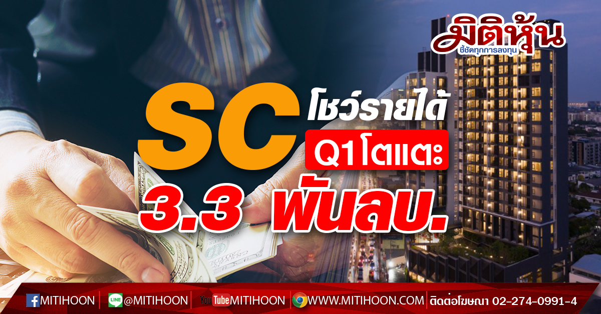 มิติหุ้น-บมจ.เอสซี แอสเสท คอร์ปอเรชั่น (SC) โดยนายอรรถพล สฤษฎิพันธาวาทย์ ประธานเจ้าหน้าที่ด้านสนับสนุนองค์กร เปิดเผยว่าบริษัทมีรายได้จากการดำเนินงานงวดไตรมาส1/63 ที่ 3,291.96 ลบ. เติบโต 3.47 % จากช่วงเดียวกันของปีก่อนที่มีรายได้จากการดำเนินงาน 3,181.55 ลบ. ส่วนกำไรสุทธิไตรมาส 1/63 อยู่ที่ 300.61 ลบ. EPS ที่หุ้นละ 0.0719บ. ลดลงเล็กน้อยจากไตรมาส1/62ที่มีกำไร 314.75 ลบ.