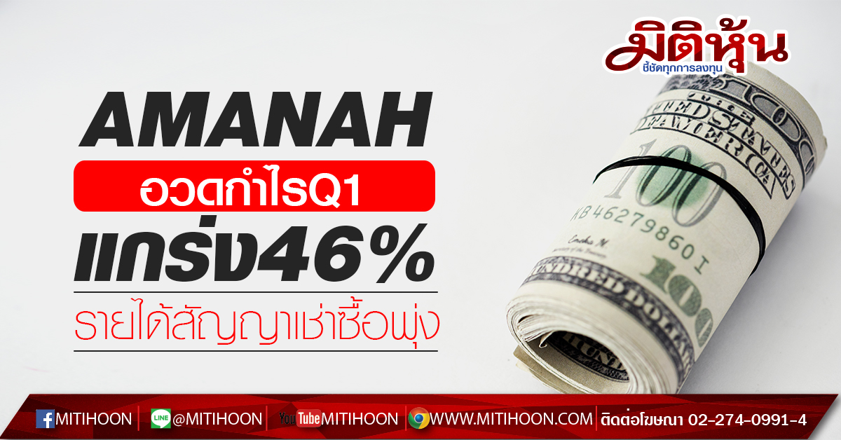ผู้สื่อข่าว “มิติหุ้น” รายงานว่า บมจ.อะมานะฮ์ ลิสซิ่ง หรือ AMANAH แจ้งงบไตรมาส 1/63 มีกำไรสุทธิ 72.44 ล้านบาท EPS 0.07 บาท เพิ่มขึ้นจากช่วงเดียวกันปีก่อน ที่มีกำไรสุทธิ 49.07 ล้านบาท EPS 0.05 บาท