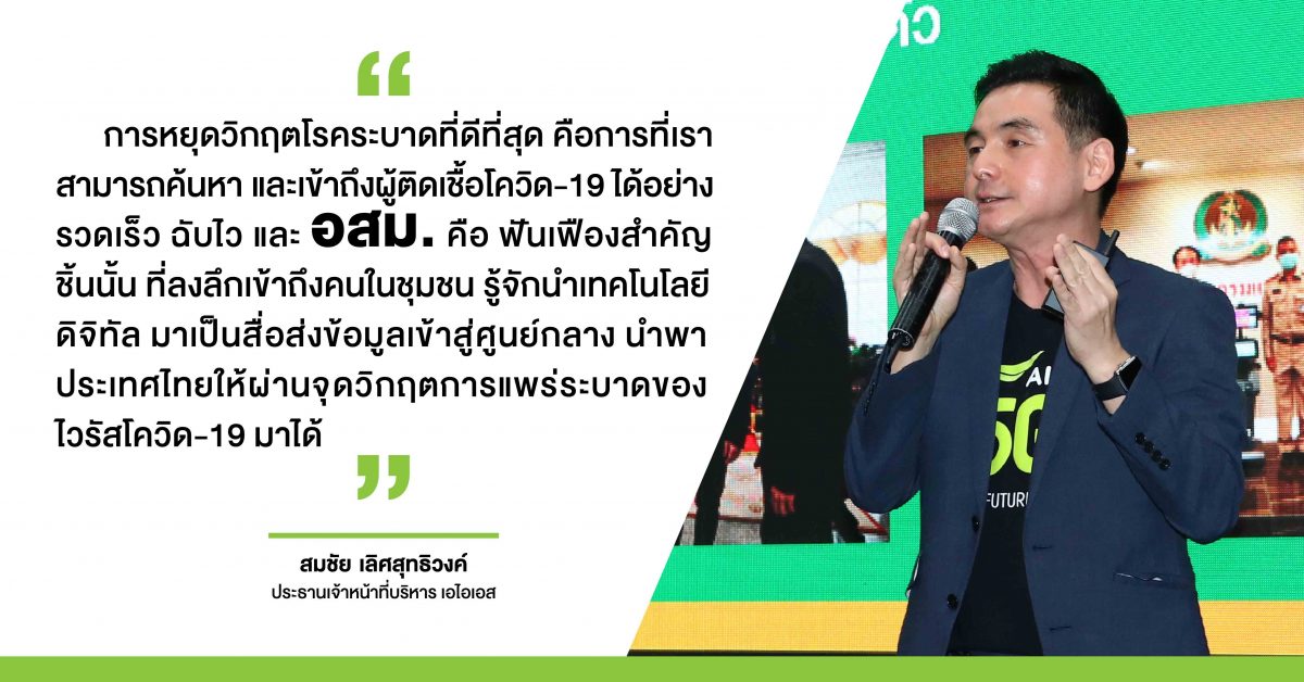 นายสมชัย เลิศสุทธิวงค์ ประธานเจ้าหน้าที่บริหาร เอไอเอส กล่าวว่า “นับจากวันที่ เอไอเอส ได้ประกาศวิสัยทัศน์ในการนำพลานุภาพของเครือข่ายอัจฉริยะ 5G สนับสนุนการทำงานของทีมแพทย์ พยาบาล ยกระดับงานสาธารณสุขให้สามารถทำงานเชิงรุก ควบคุมการแพร่ระบาดของโควิด-19 ตั้งแต่เดือนมีนาคมที่ผ่านมานั้น ปัจจุบันเราได้ทยอยส่งมอบการสนับสนุนดังกล่าว เป็นงบประมาณกว่า 177 ล้านบาท สู่ทีมแพทย์ พยาบาลด่านหน้าในการรับมือวิกฤตในครั้งนี้อย่างต่อเนื่อง พร้อมขยายเครือข่ายติดตั้งสัญญาณ 5G ในโรงพยาบาลที่รับตรวจโควิด-19 แล้วกว่า 161 โรงพยาบาลทั่วประเทศ และตั้งศูนย์เฉพาะกิจ AIS Robotic Labs พัฒนา Robot for Care หุ่นยนต์ผู้ช่วยแพทย์ทำหน้าที่ตรวจรักษาผู้ป่วยโควิด-19 ช่วยรักษาระยะห่างระหว่างหมอและคนไข้ ส่งมอบแล้ว 23 ตัว ให้กับโรงพยาบาล 22 แห่ง ซึ่งสามารถช่วยแบ่งเบาภารกิจของทีมแพทย์ พยาบาลได้อย่างดี”