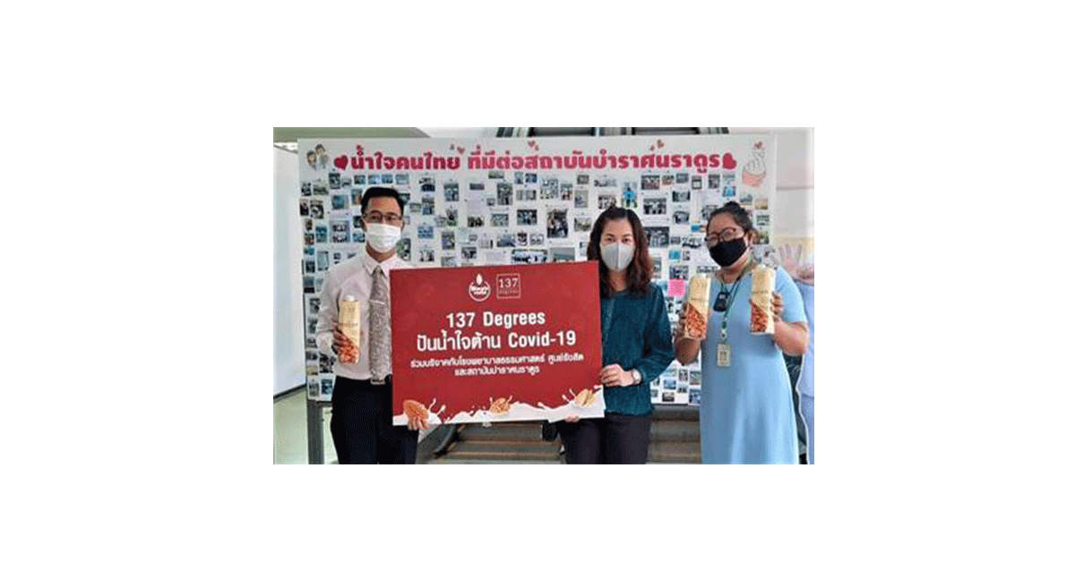 มิติหุ้น-นางสาวจิตรลดา กวีวัฒนา ผู้จัดการฝ่ายการตลาด บริษัท ซิมเพิ้ล ฟู้ดส์ จำกัด ผู้นำในการผลิตและจำหน่ายนมอัลมอนด์ นมวอลนัท และนมพิสตาชิโอ แบรนด์ 137 ดีกรี เป็นตัวแทนมอบเงินและผลิตภัณฑ์นม ให้แก่สถาบันบำราศนราดูรและโรงพยาบาลธรรมศาสตร์เฉลิมพระเกียรติ จากการจัดโครงการ “ปันน้ำใจต้านภัยโควิด-19” รวมมูลค่ากว่า 50,000 บาท เมื่อเร็ว ๆ นี้