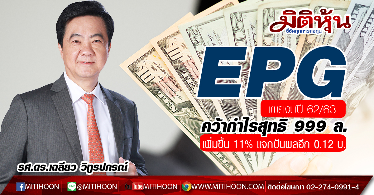 มิติหุ้น-รศ.ดร.เฉลียว วิทูรปกรณ์ รองประธานเจ้าหน้าที่บริหาร บริษัท อีสเทิร์นโพลีเมอร์ กรุ๊ป จำกัด (มหาชน) หรือ EPG ผู้ผลิตและจำหน่ายผลิตภัณฑ์โพลีเมอร์และพลาสติกแปรรูปชั้นนำของโลก เปิดเผยถึงผลประกอบการปี 62/63 (1 เม.ย.62 – 31 มี.ค.63) บริษัทมีรายได้จากการขายทั้งสิ้น 10,217 ล้านบาท ลดลงเล็กน้อย 3.4% จากช่วงเดียวกันของปีก่อนที่มีรายได้จากการขายอยู่ที่ 10,579 ล้านบาท มีกำไรสุทธิ 999 ล้านบาท ปรับตัวเพิ่มขึ้น 11% จากช่วงเดียวกันของปีก่อนที่มีกำไรสุทธิที่ 903 ล้านบาท โดยมีสัดส่วนรายได้ แบ่งเป็น AEROKLAS 46% AEROFLEX 30% และ EPP 24% สำหรับผลประกอบการปี 62/63 เป็นผลมาจาก 3 กลุ่มธุรกิจหลัก ดังนี้