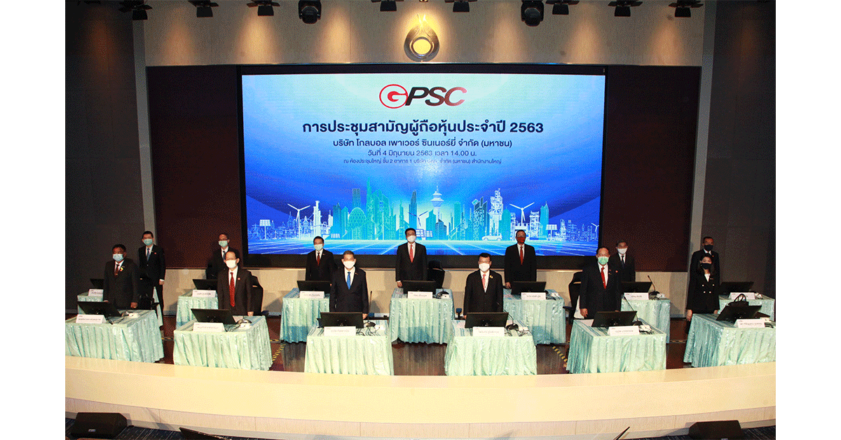 มิติหุ้น-ดร.ไพรินทร์ ชูโชติถาวร ประธานกรรมการ พร้อมด้วยคุณชวลิต ทิพพาวนิช ประธานเจ้าหน้าที่บริหารและกรรมการผู้จัดการใหญ่ ตลอดจนคณะกรรมการและผู้บริหาร บริษัท โกลบอล เพาเวอร์ ซินเนอร์ยี่ จำกัด (มหาชน) หรือ GPSC แกนนำนวัตกรรมธุรกิจไฟฟ้ากลุ่ม ปตท. ร่วมนำเสนอข้อมูลและเข้าร่วมประชุมสามัญผู้ถือหุ้นประจำปี 2563 ตามวาระต่างๆ ที่กำหนด ซึ่งเป็นการจัดประชุมแบบวิถีใหม่ หรือ New Normal เพื่อเป็นไปตามมาตรการป้องกันความเสี่ยงการติดเชื้อโควิด-19 โดยในการประชุมครั้งนี้ ได้มีจุดคัดกรอง ทั้งการตรวจวัดอุณหภูมิร่างกาย การเว้นระยะห่าง และมีเจ้าหน้าที่พร้อมดูแลผู้ถือหุ้นที่เข้าร่วมประชุมทุกท่าน ณ ห้องประชุมใหญ่ ชั้น 2 อาคาร 1 บริษัท ปตท.จำกัด (มหาชน) สำนักงานใหญ่ ถนนวิภาวดี-รังสิต จตุจักร กรุงเทพฯ