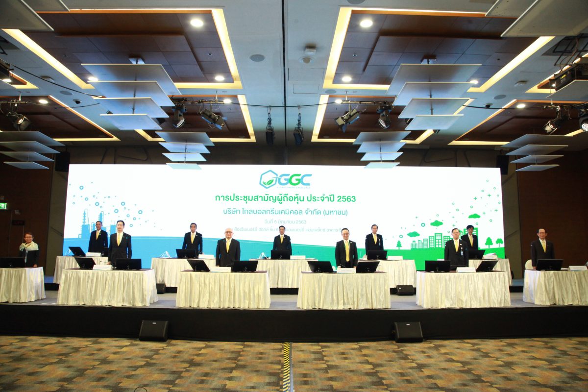 มิติหุ้น – บริษัท โกลบอลกรีนเคมิคอล จำกัด (มหาชน) หรือ GGC เดินหน้าจัดงานประชุมสามัญผู้ถือหุ้นประจำปี 2563 เพื่อชี้แจงถึงผลการดำเนินธุรกิจประจำปี 2562 แก่ผู้ถือหุ้น หลังสถานการณ์การแพร่ระบาดของไวรัสโควิด-19 เริ่มคลี่คลาย พร้อมวางมาตรการเข้มข้น เพื่อดูแลความปลอดภัยของผู้ถือหุ้นและผู้เข้าร่วมประชุมทุกท่าน โดยมีนายสุพัฒนพงษ์ พันธ์มีเชาว์ ประธานกรรมการ นายวิทูร ซื่อวัฒนากุล กรรมการผู้จัดการ พร้อมด้วยคณะกรรมการและผู้บริหาร ให้การต้อนรับ และตอบข้อซักถามในวาระต่างๆ แก่ผู้ถือหุ้น และผู้เข้าร่วมประชุม ณ ห้องซินเนอร์ยี่ ฮอลล์ ชั้น 6 ศูนย์เอนเนอร์ยี่คอมเพล็กซ์ อาคารซี ถนนวิภาวดีรังสิต เขตจตุจักร กรุงเทพฯ