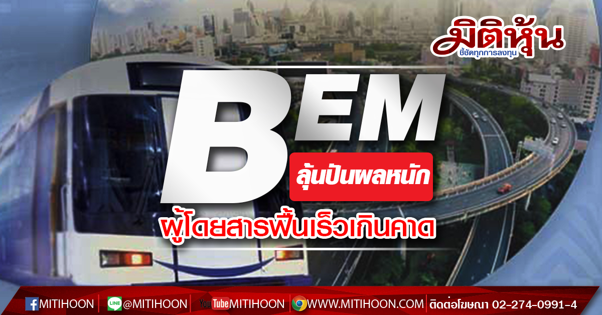 มิติหุ้น-บมจ.ทางด่วนและรถไฟฟ้ากรุงเทพ(BEM) BEM ที่ราคาเป้าหมาย 10.60 บาท/หุ้นมีแผนการจ่ายเงินปันผลเพิ่ม สภาวะที่การจราจรที่ฟื้นตัว เร็ว และโอกาสชนะประมูลสายสีส้ม เป็นปัจจัยบวก