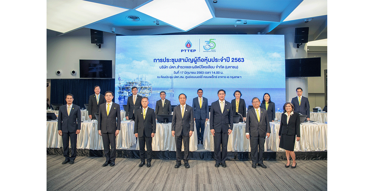 มิติหุ้น-นายปรัชญา ภิญญาวัธน์ (แถวหน้า, กลาง) ประธานกรรมการ พร้อมทั้งคณะกรรมการ และนายพงศธร ทวีสิน (แถวหน้า ที่ 3 จากขวา) ประธานเจ้าหน้าที่บริหารและกรรมการผู้จัดการใหญ่ บริษัท ปตท.สำรวจและผลิตปิโตรเลียม จำกัด (มหาชน) หรือ ปตท.สผ. จัดประชุมสามัญผู้ถือหุ้นประจำปี 2563 เพื่อชี้แจงผลการดำเนินธุรกิจปี 2562 รวมถึงแผนการดำเนินธุรกิจของบริษัทในอนาคต โดยที่ประชุมมีมติอนุมัติการจ่ายเงินปันผลประจำปี 2562 ในอัตราหุ้นละ 6 บาท ซึ่งการประชุมในครั้งนี้ ปตท.สผ. มีมาตรการอย่างเคร่งครัดเพื่อป้องกันการแพร่ระบาดของไวรัสโควิด-19 รวมทั้ง มีการจัดงานตามแนวทางการจัดการประชุมสีเขียว โดยคำนึงถึงการลดผลกระทบต่อสิ่งแวดล้อมด้วย การประชุมจัดขึ้น ณ ศูนย์เอนเนอร์ยี่ คอมเพล็กซ์