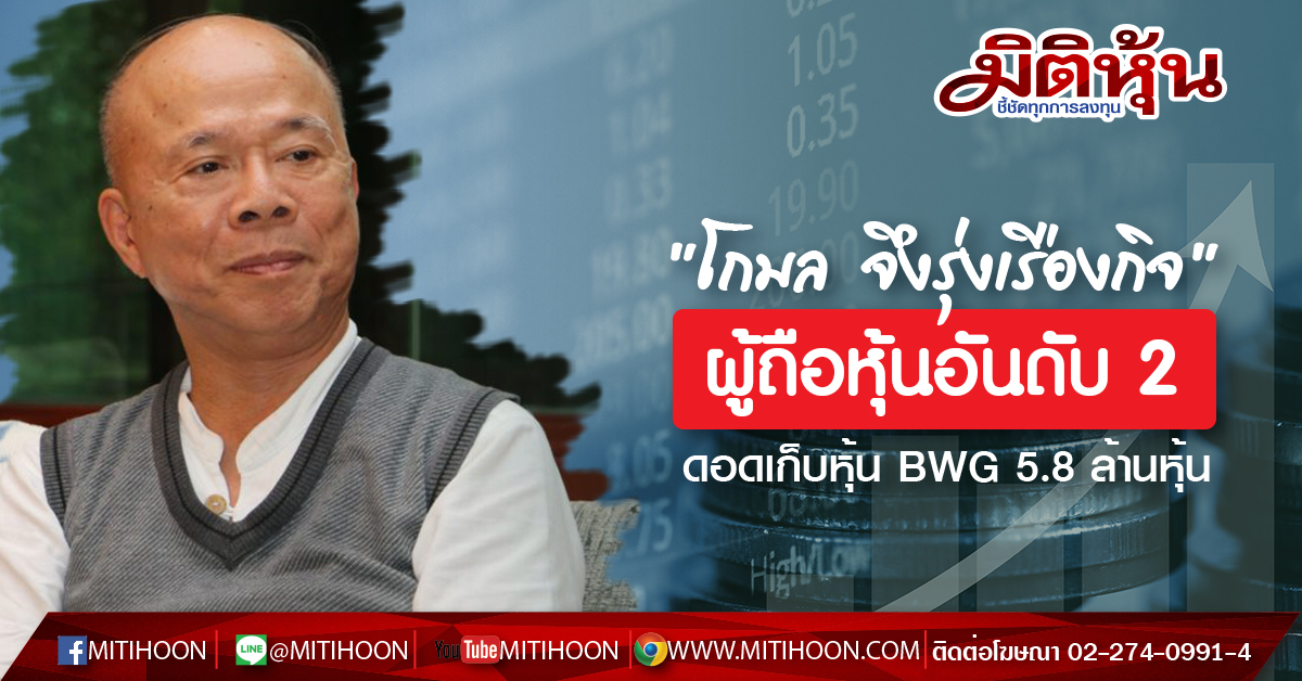 ขณะที่ก่อนหน้านี้มีรายงานสำนักงานก.ล.ต.ตามแบบ 246-2 ว่า นายโกมล จึงรุ่งเรืองกิจ ได้ขายหุ้น BWG เมื่อวันที่ 1 มิ.ย.63 จำนวน 7.77 ล้านหุ้น คิดเป็น 0.2027% ทำให้จำนวนหลักทรัพย์ภายหลังการจำหน่าย คิดเป็น 4.9327% ของสิทธิออกเสียงทั้งหมดของกิจการ จากเดิมถืออยู่ 5.1355%