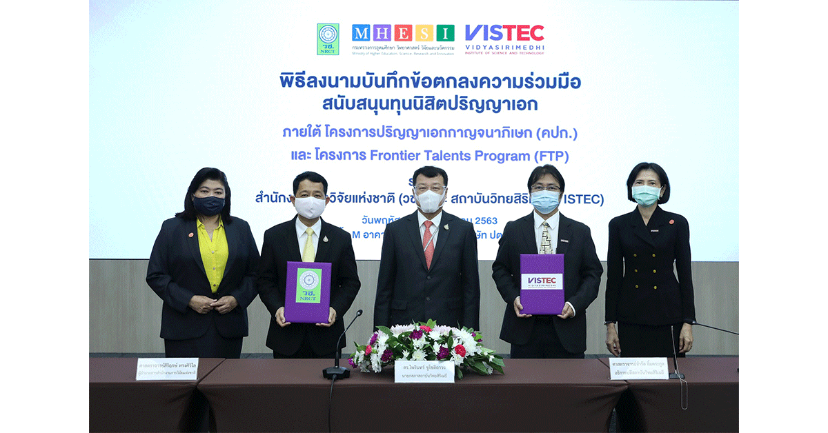 มิติหุ้น – ดร.ไพรินทร์ ชูโชติถาวร นายกสภาสถาบันวิทยสิริเมธี เป็นสักขีพยานผู้ทรงเกียรติ ในพิธีลงนามบันทึกข้อตกลงความร่วมมือสนับสนุนทุนนิสิตปริญญาเอกภายใต้โครงการปริญญาเอกกาญจนาภิเษก (คปก.) และโครงการ Frontier Talents Program (FTP) ระหว่างสำนักงานการวิจัยแห่งชาติ (วช.) และ สถาบันวิทยสิริเมธี (VISTEC) โดยมีศาสตราจารย์ นายแพทย์สิริฤกษ์ ทรงศิวิไล เลขาธิการคณะกรรมการวิจัยแห่งชาติ ทำหน้าที่ ผู้อำนวยการสำนักงานการวิจัยแห่งชาติ และศาสตราจารย์ ดร.จำรัส ลิ้มตระกูล อธิการบดีสถาบันวิทยสิริเมธี เป็นผู้ลงนามของทั้งสองฝ่าย วัตถุประสงค์เพื่อมุ่งพัฒนานักวิจัยระดับปริญญาเอกที่มีความเป็นเลิศด้านวิทยาศาสตร์และเทคโนโลยีเทียบเท่าระดับนานาชาติ ต่อยอดสู่การสร้างสรรค์นวัตกรรมชั้นแนวหน้า